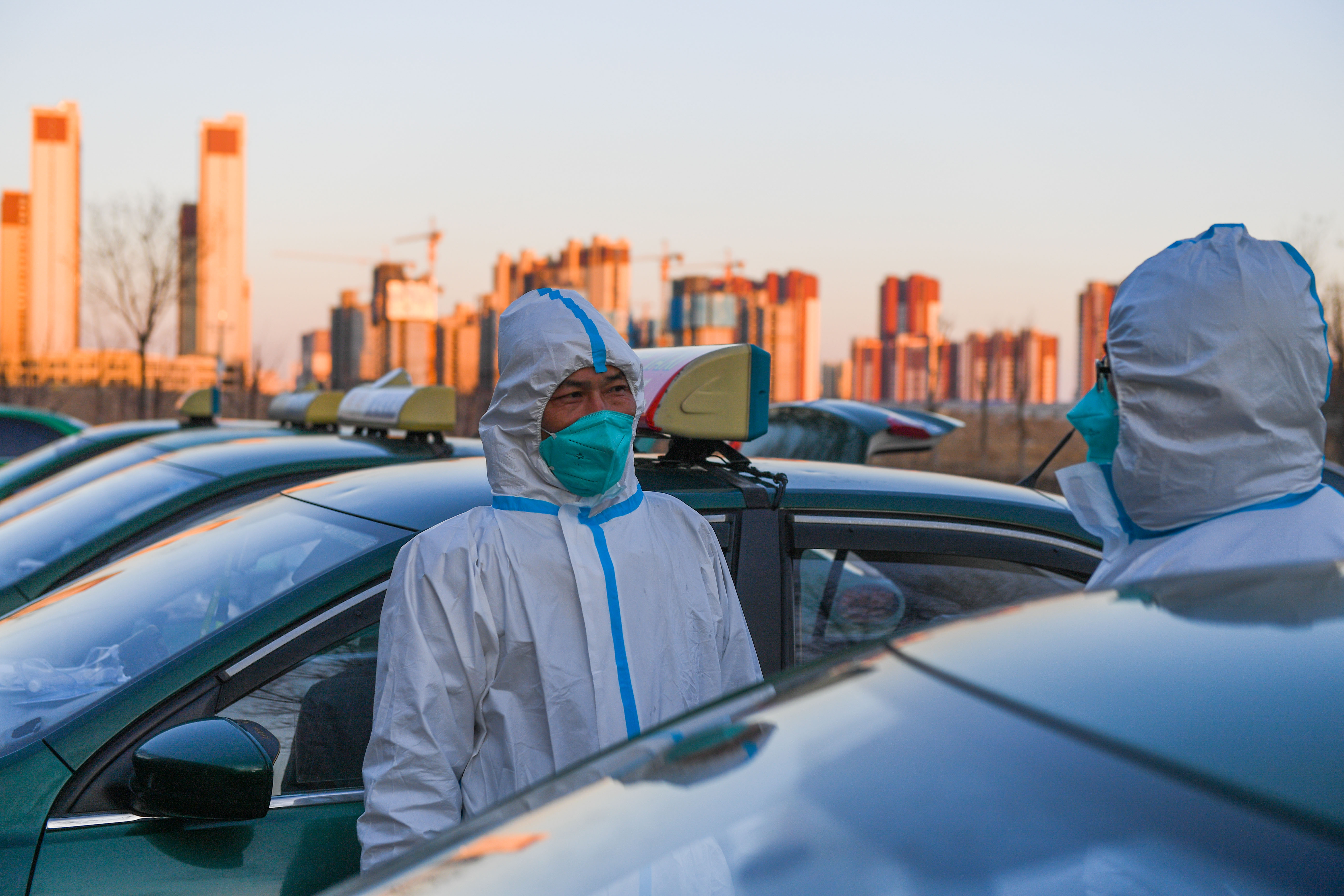 新华社照片,呼和浩特,2022年2月23日 的哥“战”疫 2月22日,在核酸检测实验室停车场,赵永红(左)和志愿者聊天。 今年55岁的赵永红是呼和浩特市启东出租车公司的一名出租车司机,今年是他当出租车司机的第26个年头。近期呼和浩特出现新冠肺炎疫情,身为共产党员的赵永红第一时间联系到呼和浩特市客运出租汽车行业协会,报名参加运送核酸检测样本的志愿服务工作。他每天驾驶出租车往返于临时核酸检测点和核酸检测实验室之间,为战胜疫情贡献力量。 记者从呼和浩特市客运出租汽车行业协会了解到,目前当地共有500多辆出租车参与疫情防控工作。 新华社记者 刘磊 摄