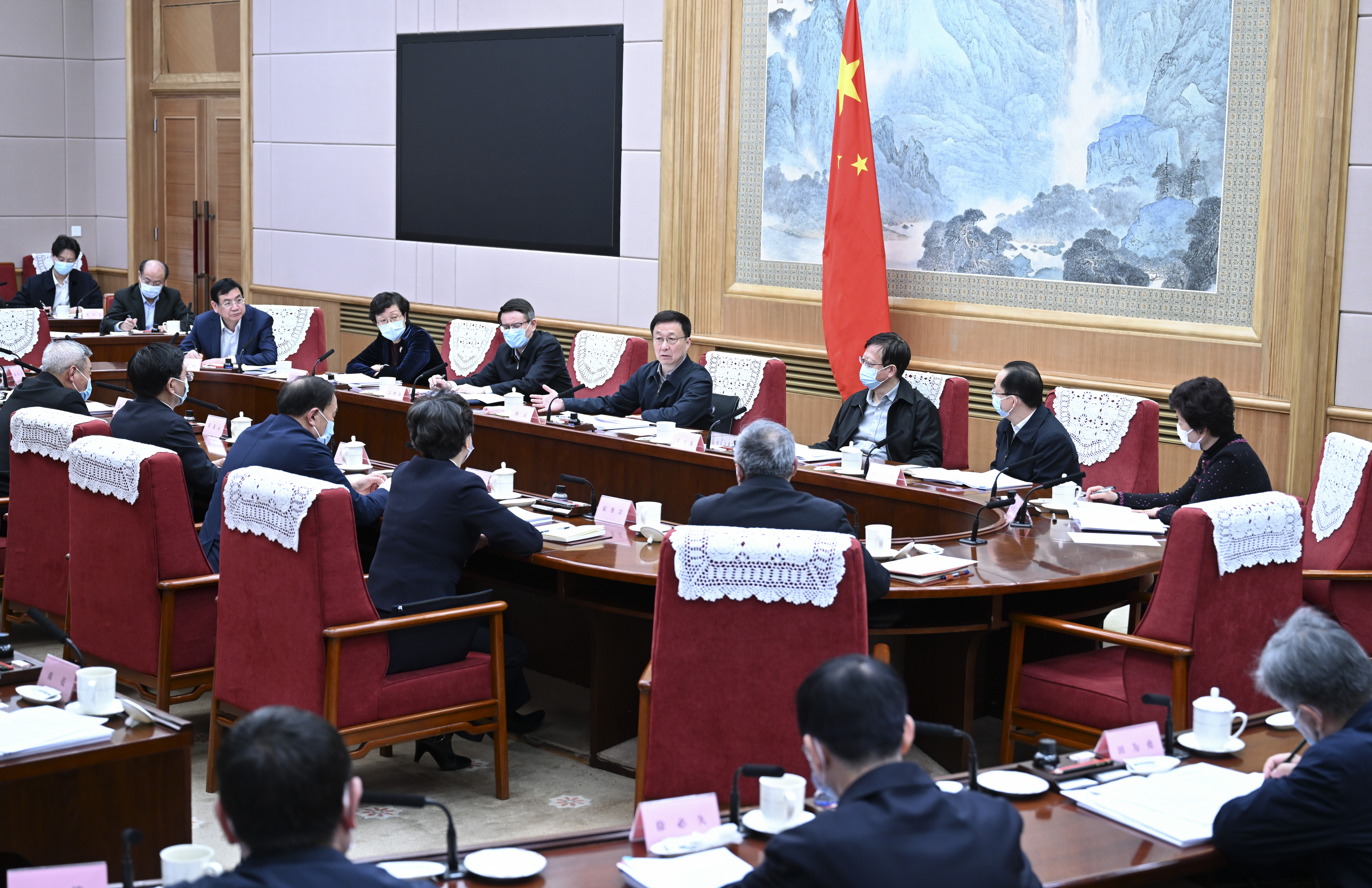 新华社照片,北京,2022年2月23日 韩正主持召开中央生态环境保护督察工作领导小组会议 2月22日,中共中央政治局常委、国务院副总理、中央生态环境保护督察工作领导小组组长韩正主持召开中央生态环境保护督察工作领导小组会议。 新华社记者 张领 摄