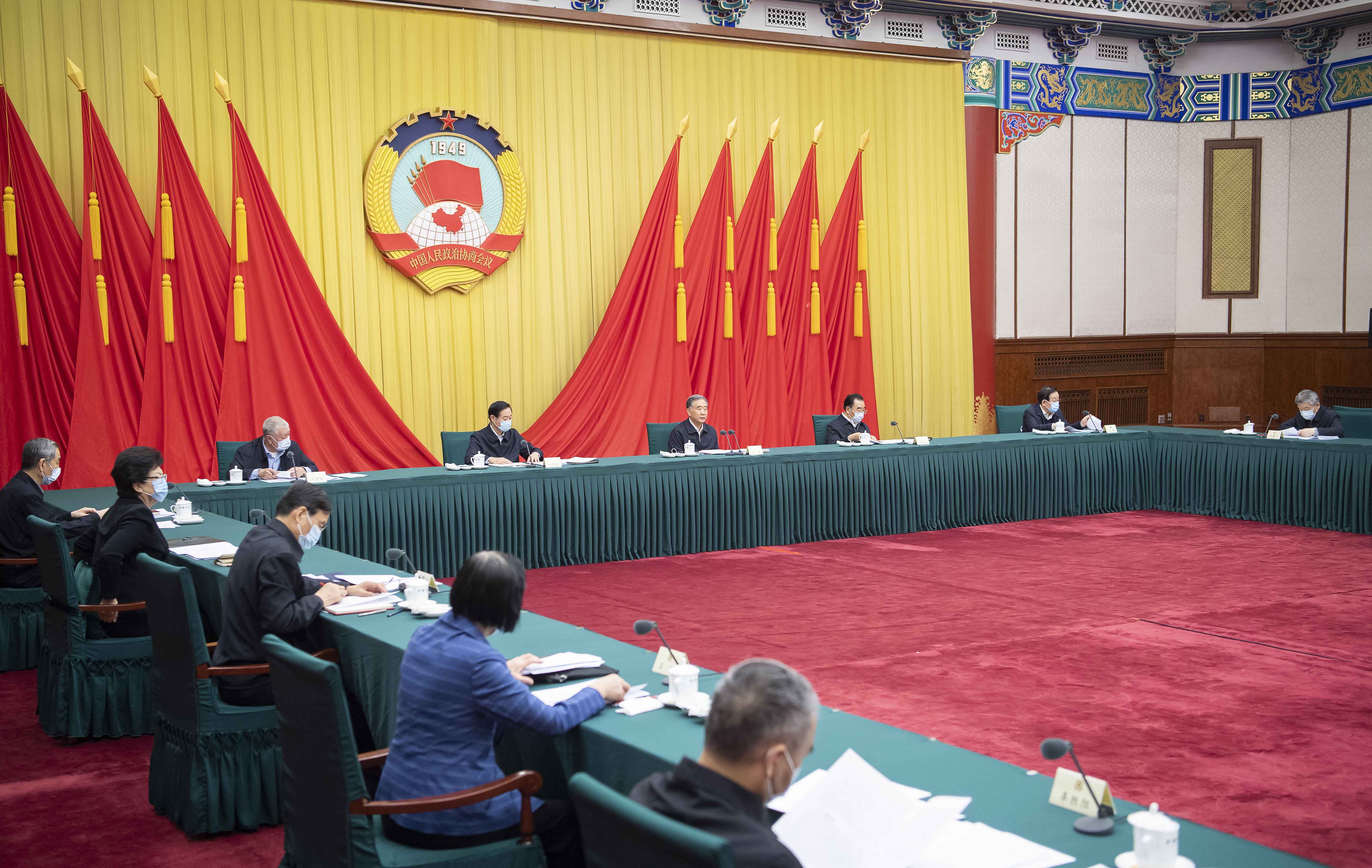新华社照片,北京,2022年2月23日 汪洋主持召开全国政协主席会议 2月23日,政协第十三届全国委员会第六十六次主席会议在北京召开。中共中央政治局常委、全国政协主席汪洋主持会议并讲话。 新华社记者 李涛 摄
