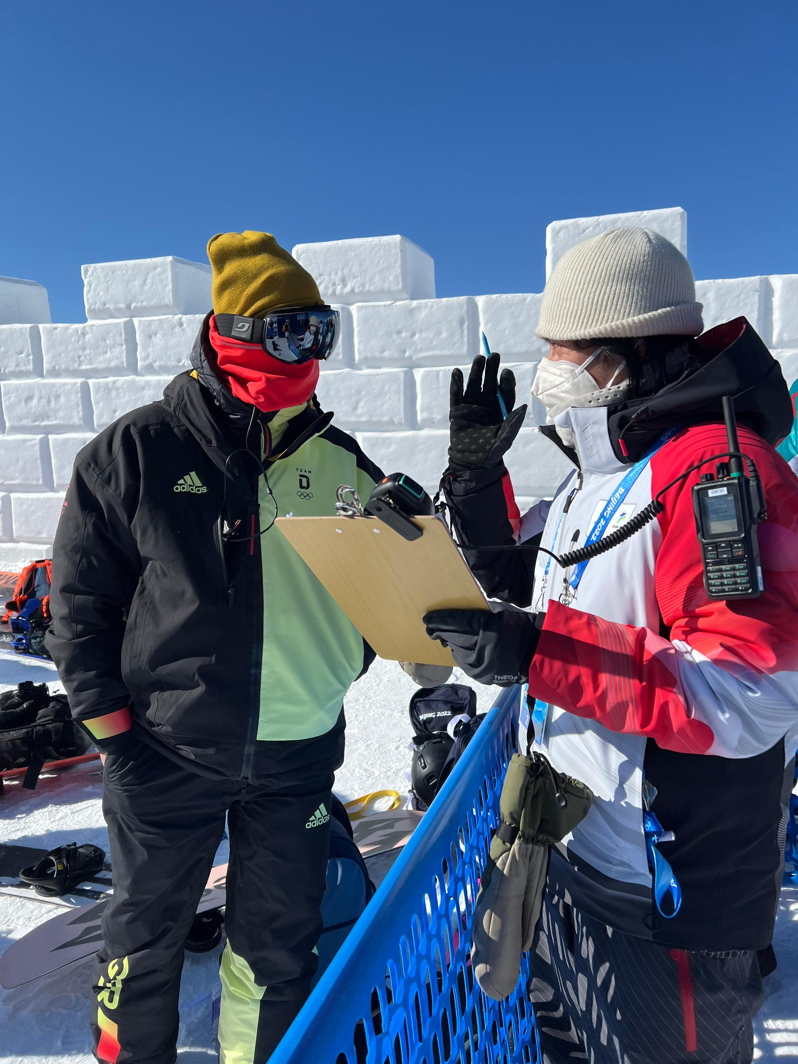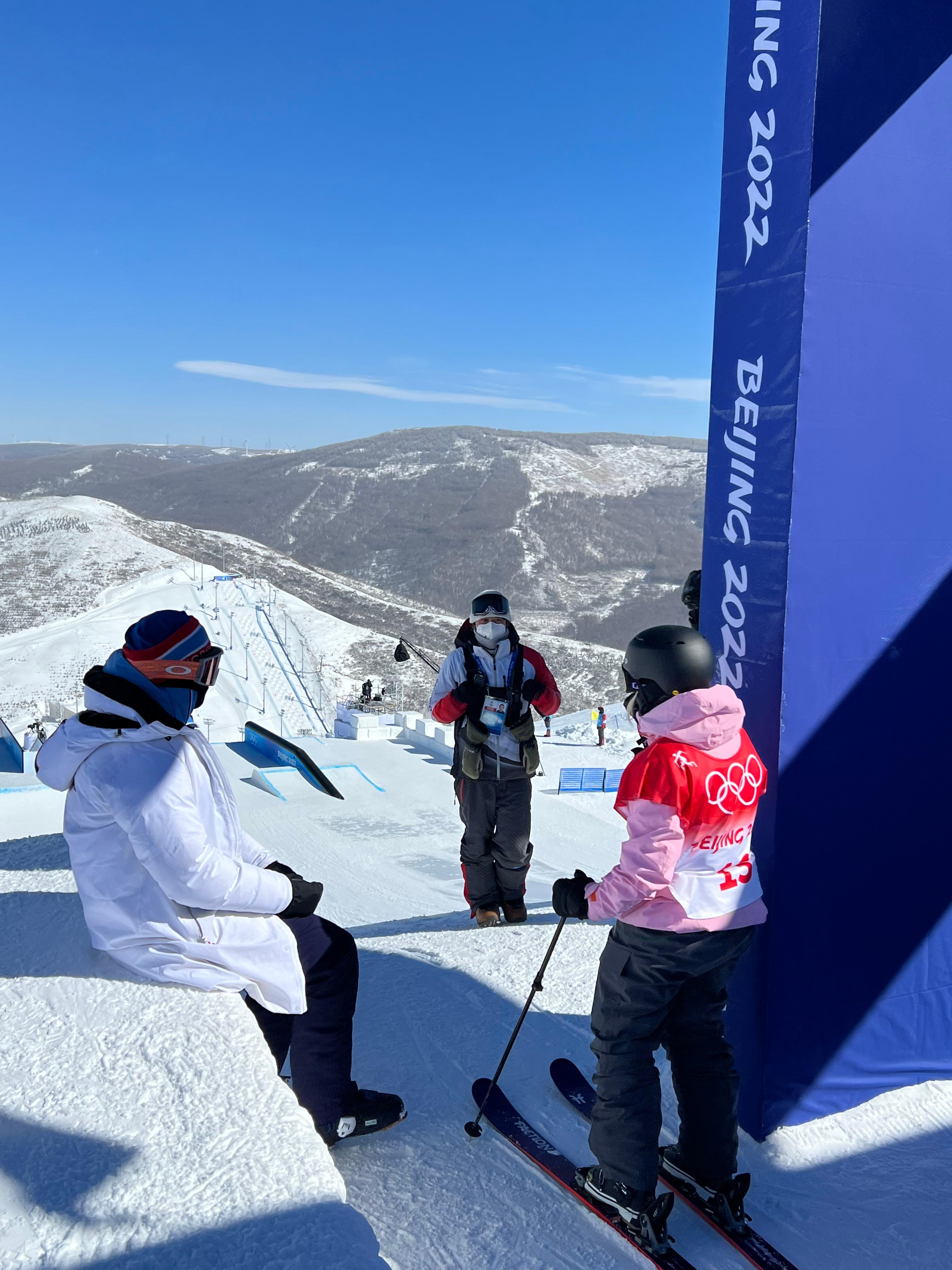 据李旭介绍,冬奥会裁判员分两种,一种是评分裁判,另一种是赛事组织裁判。李旭就是赛事组织裁判,负责坡面障碍技巧比赛起点的工作。