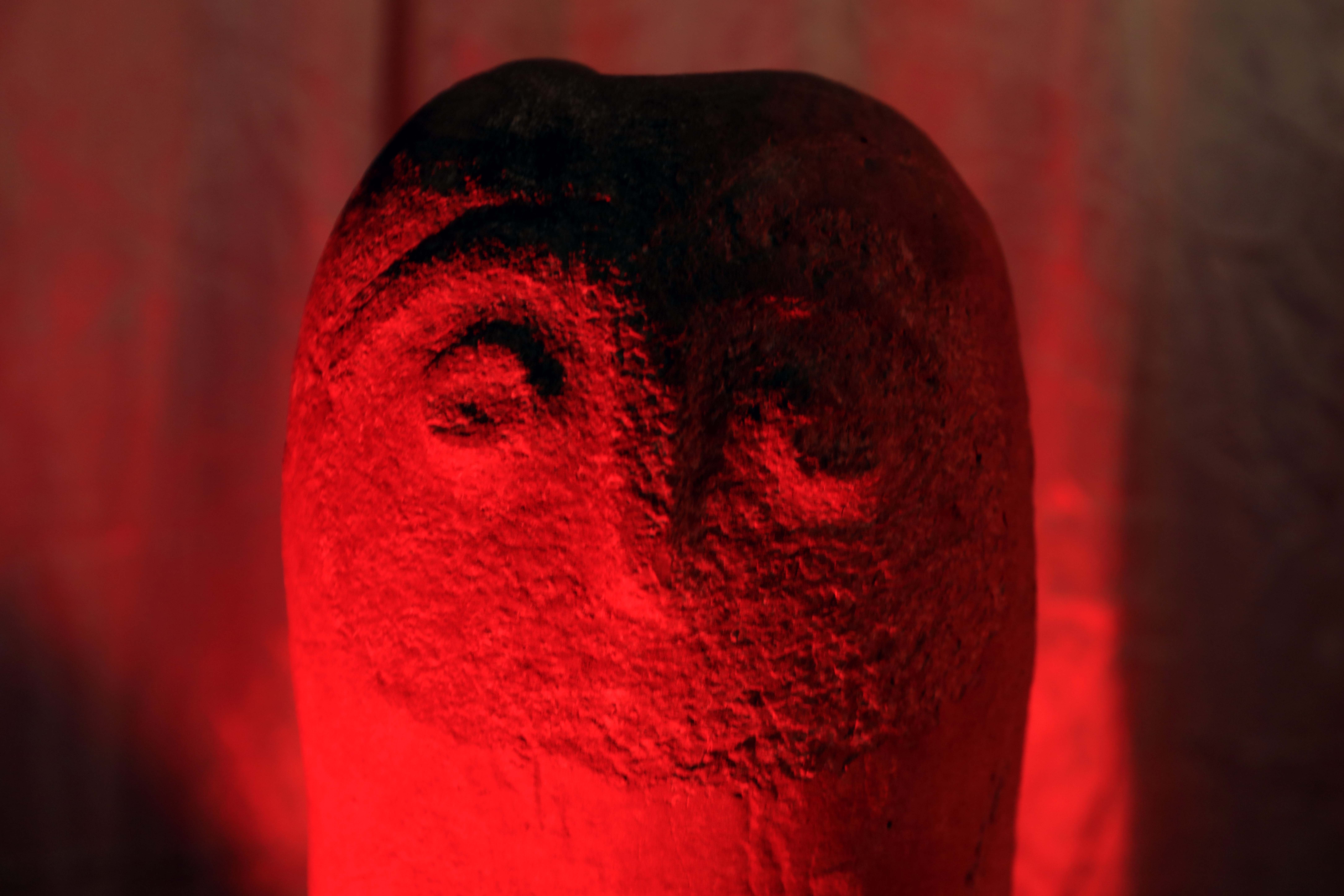 新华社照片,安曼,2022年2月23日 (国际·图文互动)(3)约旦发现距今约9000年的人类仪式遗迹 这是2月22日在约旦首都安曼拍摄的雕刻着精细的人物形象的石碑。 约旦旅游和古迹部22日宣布,考古人员初步考证认为,2021年在约旦东南部沙漠地区发掘出的一处古人类举行仪式的设施遗迹可以追溯到约公元前7000年,也就是距今约9000年的新石器时代。 新华社发(穆罕默德·阿布·古什摄)