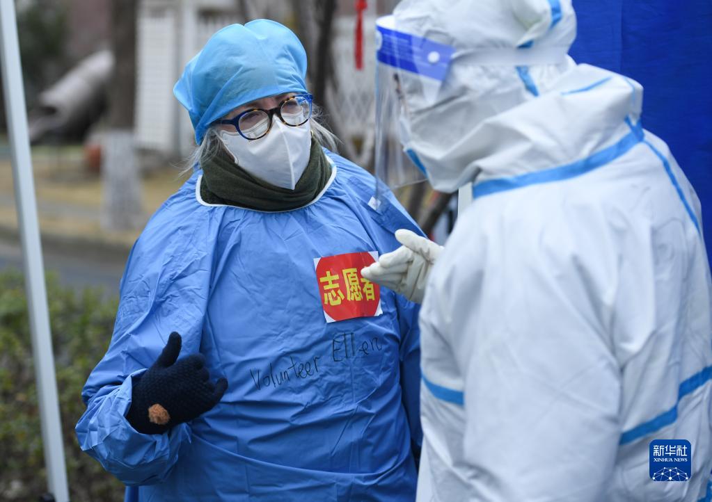 作为志愿者,施爱伦在苏州工业园区西湖社区青湖丽苑小区核酸采样点帮助外籍人士登记信息、维持秩序、讲解注意事项。她用专注的神情、幽默的话语,协助外籍人士顺利完成核酸采样,收获大量网友和市民点赞。