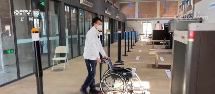 总台记者 张景:这里是北京冬残奥村的代表团接待大厅,是各代表团来村的第一站。为了方便坐轮椅人士快速安全通过,在安检的环节不用过比较窄的安检门,专门有绿色通道,有安保人员进行手检。