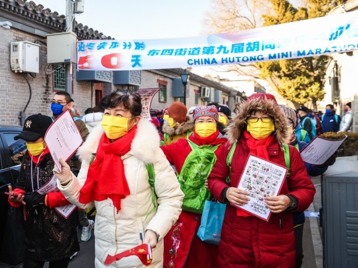 2021年12月16日,北京冬奥会倒计时50天,东四街道在东四四条胡同举办第九届胡同迷你马拉松。受访者供图