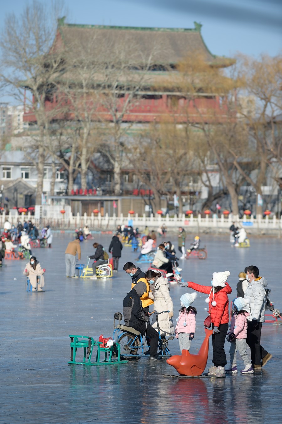 每逢冬季,与东四街道隔区相望的西城区什刹海地区变成另一幅场景,从夏季坐人力车逛胡同到冬季什刹海滑冰,这里的人气因冬季的到来变得更加火爆。在许多北京市民眼中,穿上冰鞋,坐上冰车,与家人朋友在冰面嬉冰,是老北京冬天该有的“传统节目”。今年冬季,什刹海20多万平方米的冰场共接待13万人次体验冰雪乐趣。
