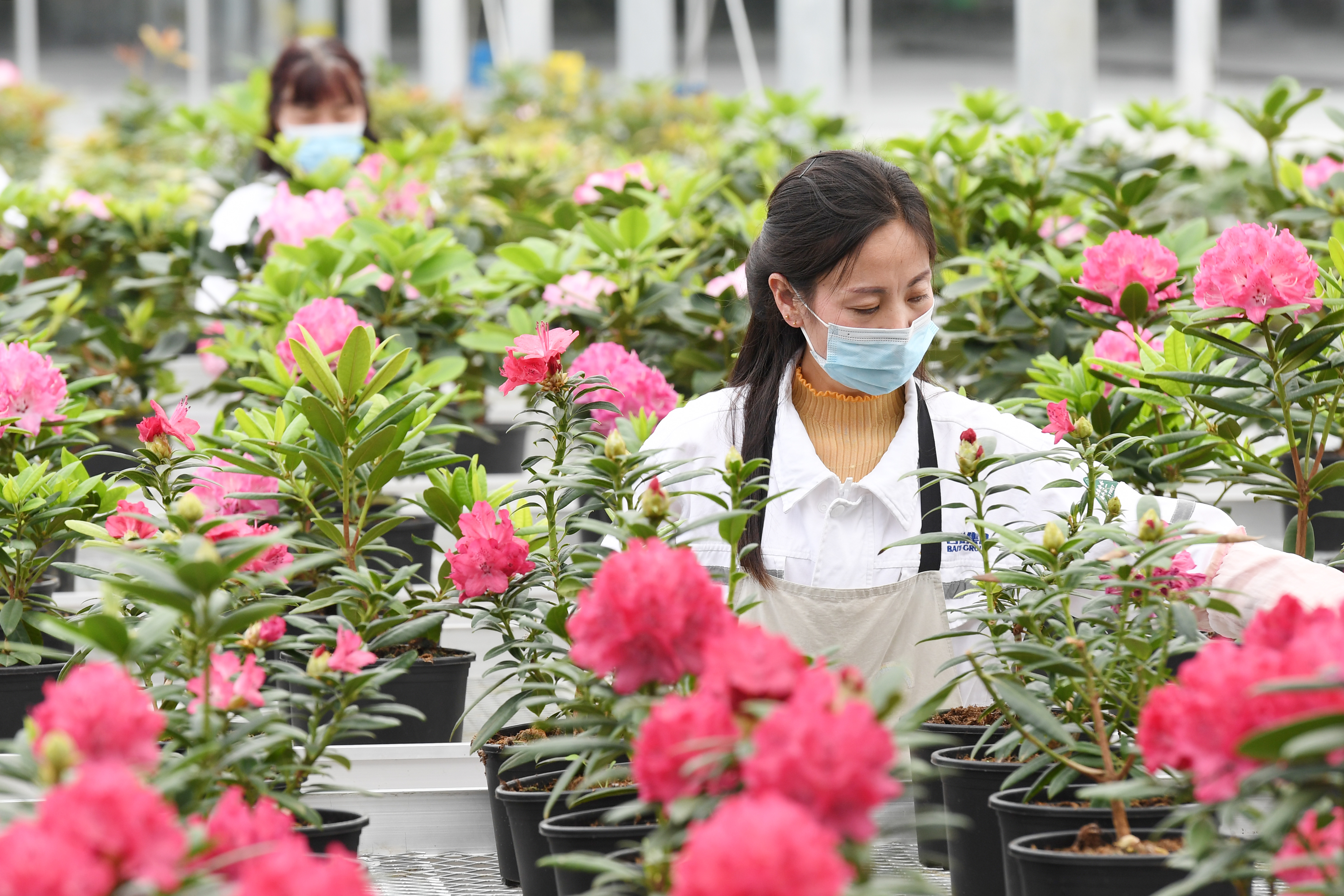 新华社照片,和政(甘肃),2022年2月24日 智慧农业助春耕 西北农村“春未暖花已开” 2月23日,在和政县一家现代花卉产业园,工作人员对花卉进行日常管护。 初春时节,甘肃省临夏回族自治州和政县室外最低温度虽然仍低至零下十几摄氏度,和政县三合镇石虎家村的一家现代花卉产业园却通过智慧农业技术,让园中呈现“春未暖花已开”的景象。 近年来,当地大力推进智慧农业建设,打造花卉数字农业示范园,采用智能控制系统、加热系统、补光系统等先进设备,通过高新技术及管理模式,开展以蝴蝶兰、高山杜鹃为主的盆花工厂化生产。据介绍,各类盆花年产300多万盆,产业带动当地500多名劳动力就业,有效增加群众收入。 新华社记者 范培珅 摄