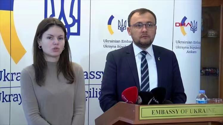 △图为乌克兰驻土大使24日发表电视讲话(来自DHA通讯社)