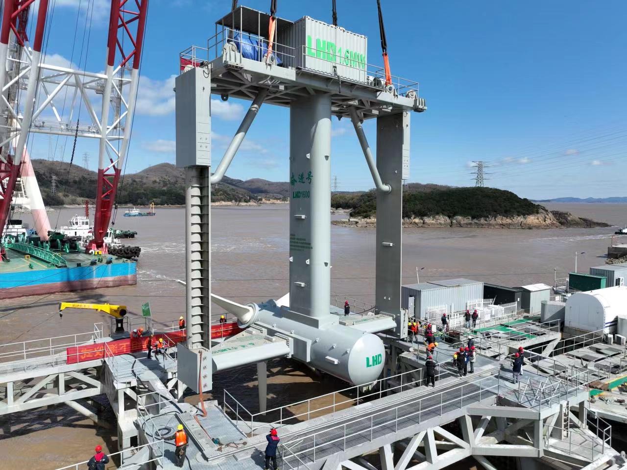 “呜——”随着一声鸣笛在浙江舟山秀山岛响起,单机1.6兆瓦潮流能发电机组“奋进号”自海面缓缓下降,装载进LHD潮流能发电工程第二期总成平台。
