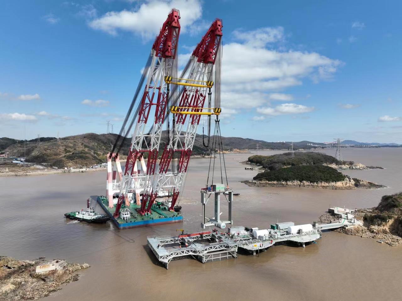 2月24日,潮流能发电机组“奋进号”在浙江舟山秀山岛下海。新华社发(张帆摄)