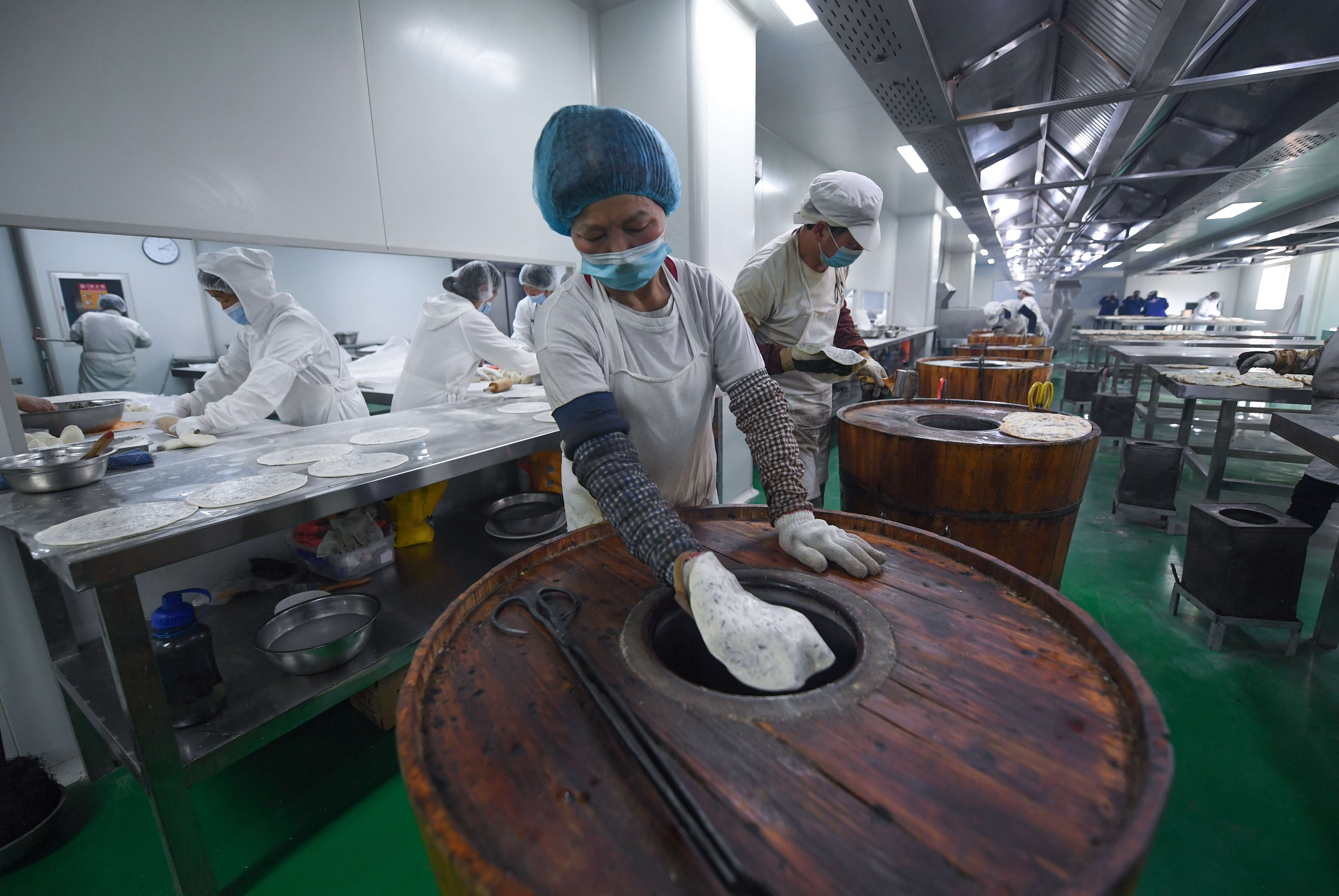新华社照片,杭州,2022年2月24日 浙江淳安:传统美食助农增收 2月24日,在杭州市淳安县临岐镇秋念饼业工厂,工人在用传统烘烤桶烘制当地特色美食——梅干菜饼。 近年来,浙江省杭州市淳安县临岐镇积极推动传统特色美食产业发展,其中主打“家乡的味道”的传统美食梅干菜烤饼就是其中的代表,成为当地的主打特色产品销往全国各地,带动当地百姓在家门口就业以及相关服务业的发展。 新华社记者 徐昱 摄