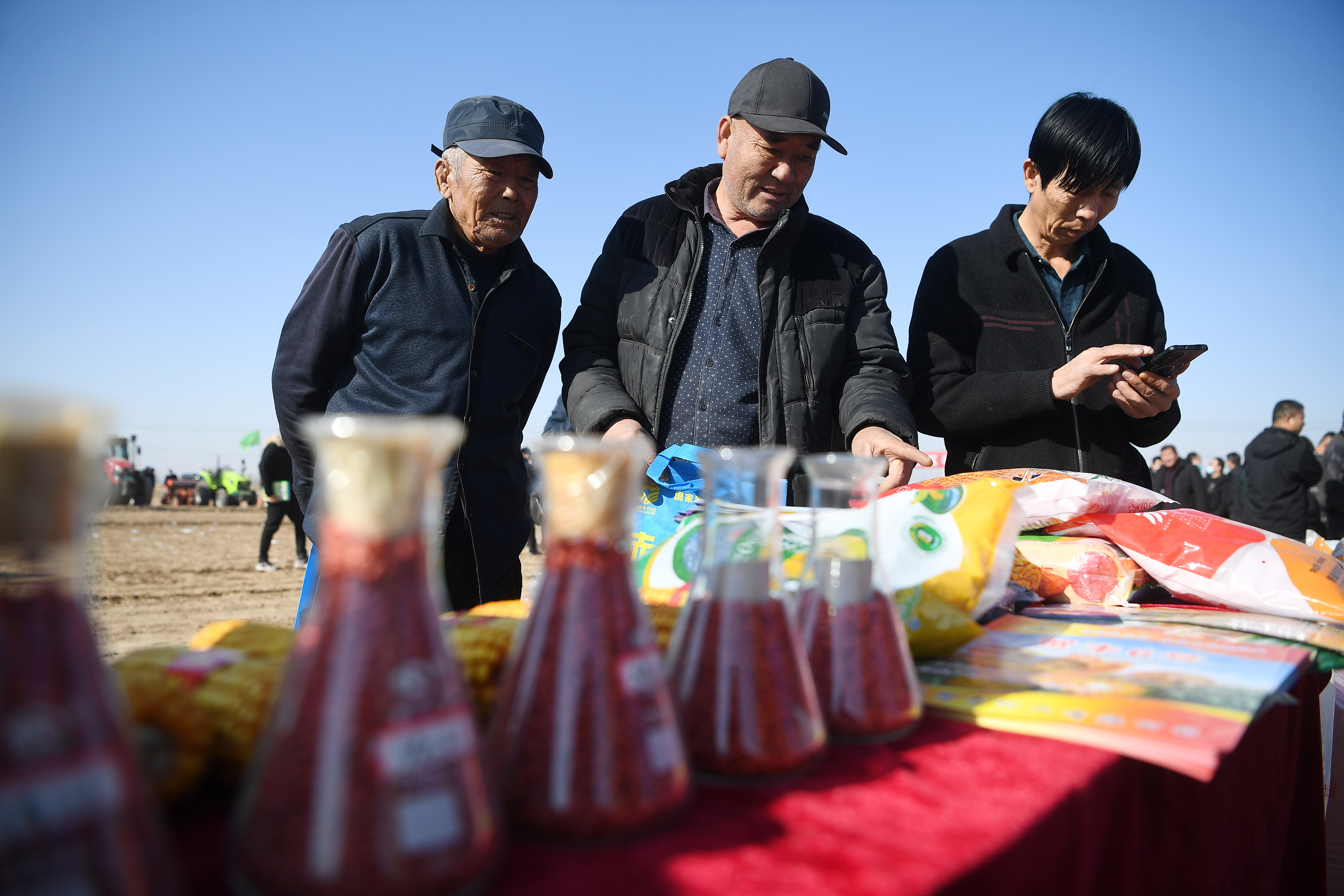 新华社照片,银川,2022年2月24日 宁夏举行春播生产现场会 2月24日,农户在春播生产现场会上了解种子情况。 当日,宁夏回族自治区春播生产现场会在银川市贺兰县立岗镇银星村召开,现场邀请农业、科技、水利、气象等部门工作人员、专家指导春耕春播工作,并为农户展示激光平地仪、植保无人机、旋耕机等春耕农业机械,积极推进春耕生产,确保夏粮丰收和完成全年粮食生产目标任务。 新华社记者 王鹏 摄