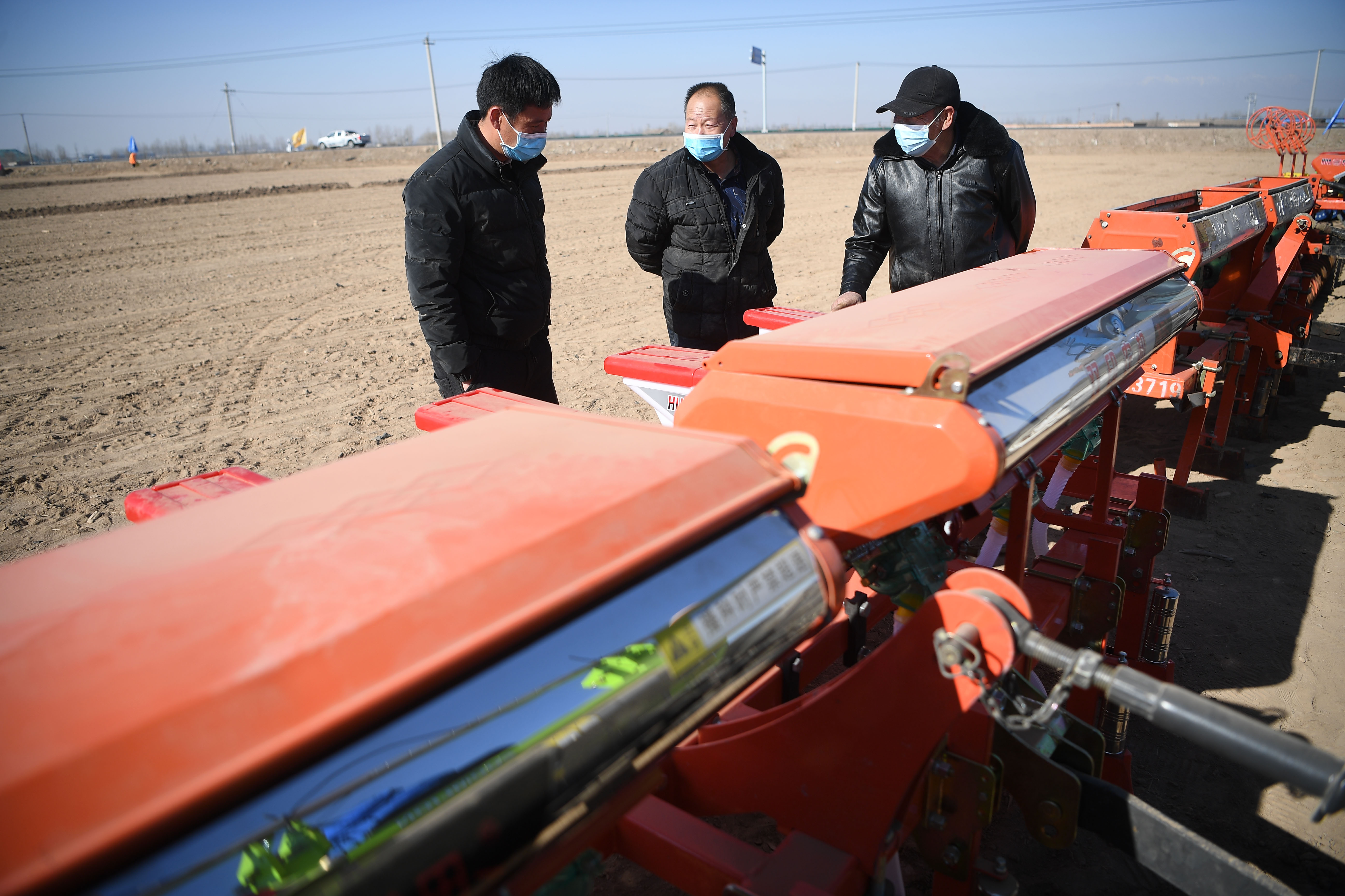 新华社照片,银川,2022年2月24日 宁夏举行春播生产现场会 2月24日,农户在春播生产现场会上了解农机情况。 当日,宁夏回族自治区春播生产现场会在银川市贺兰县立岗镇银星村召开,现场邀请农业、科技、水利、气象等部门工作人员、专家指导春耕春播工作,并为农户展示激光平地仪、植保无人机、旋耕机等春耕农业机械,积极推进春耕生产,确保夏粮丰收和完成全年粮食生产目标任务。 新华社记者 王鹏 摄