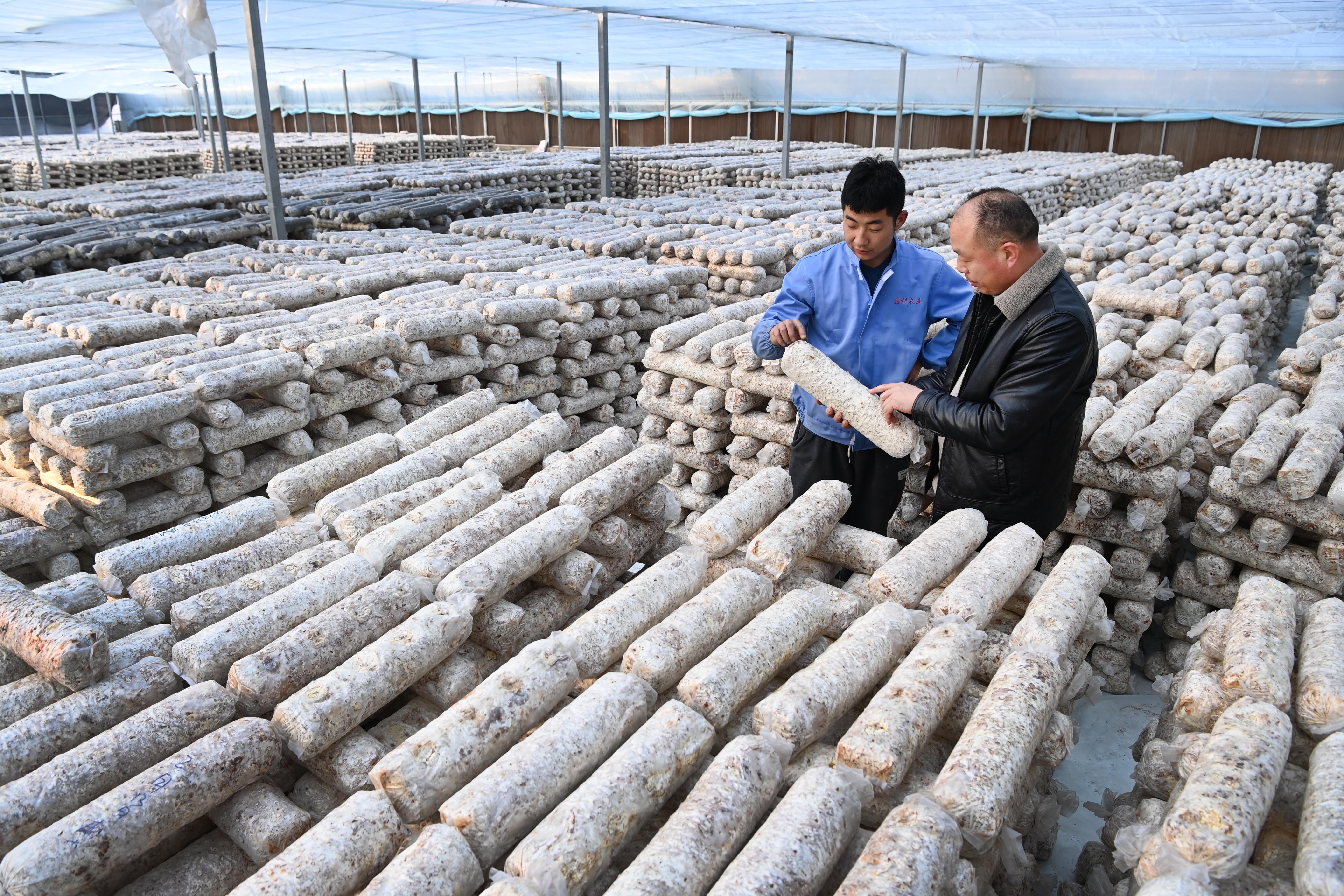 新华社照片,汉中(陕西),2022年2月24日 秦岭深处农事忙 2月24日,留坝县武关驿镇一家农业科技公司的员工在检查食用菌包。 秦岭深处的陕西省汉中市留坝县通过发展现代设施农业,推动春耕生产,紧抓农时,田间地头一派农忙景象。 新华社记者陶明摄