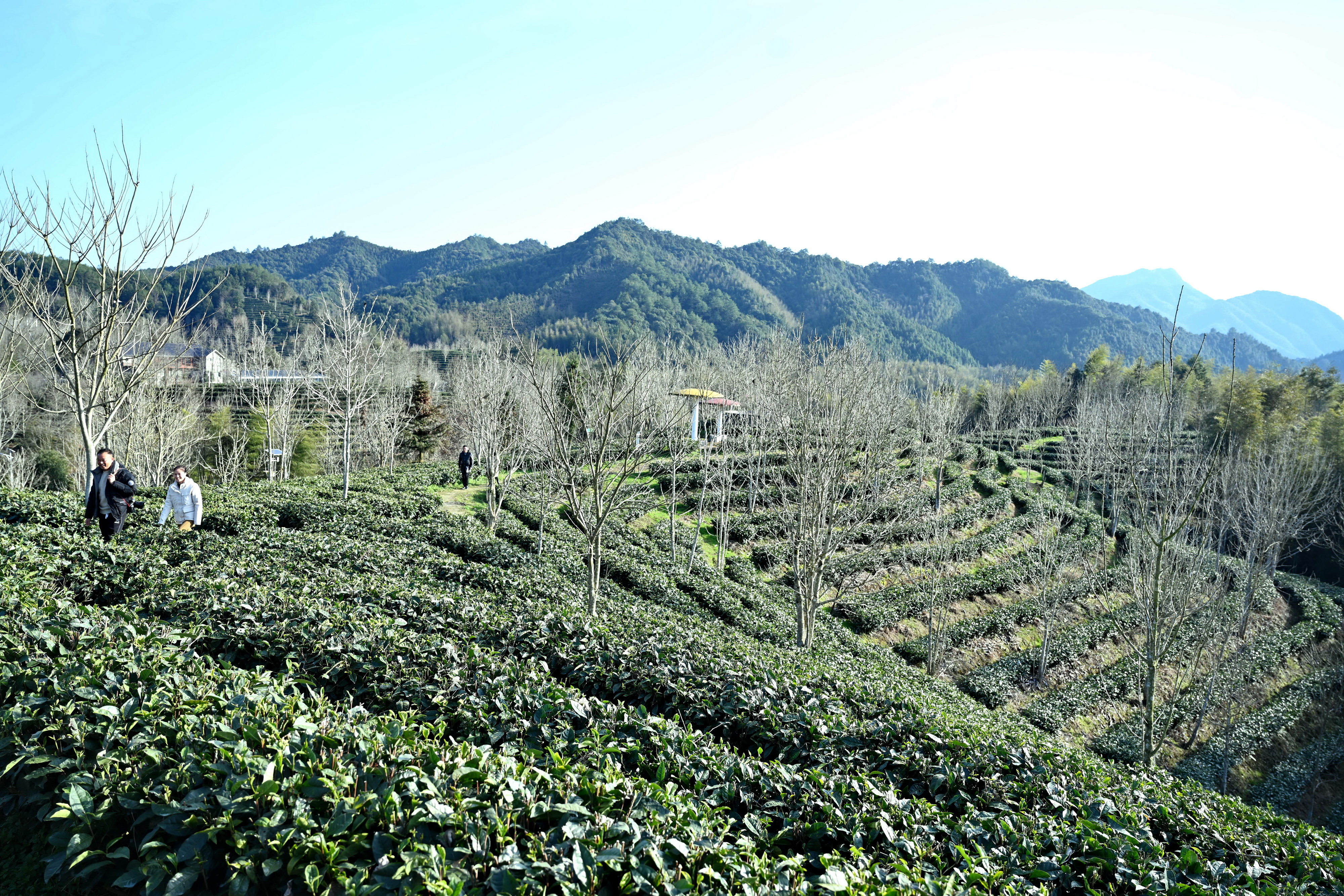新华社照片,松溪(福建),2022年2月25日 福建松溪:发展特色产业 推动增收致富 2月24日,游客在福建南平市松溪县祖墩乡刘源村的一处生态茶园参观。 地处闽北山区的松溪县是传统农业大县,曾是福建省省级扶贫开发重点县。近年来,该县立足自身资源禀赋,因地制宜发展茶叶、食用菌等特色产业,农业现代化、规模化、组织化水平持续提升,有力带动群众增收致富。 新华社记者 张华迎 摄