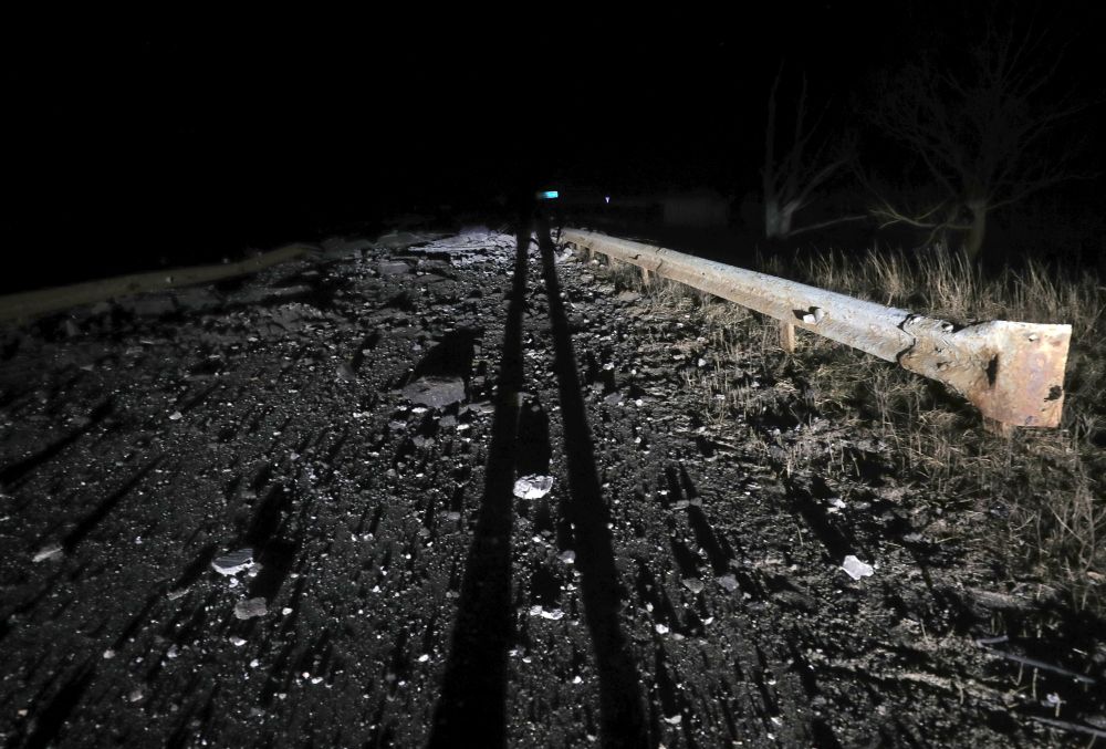 进入乌克兰30多公里处跨河主干道大桥被炸毁。新华社记者鲁金博摄