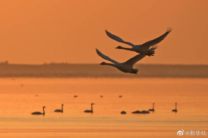 【惊艳!#大天鹅映着日出飞翔的绝美瞬间#】随着天气转暖,在山东荣成大天鹅国家级自然保护区,大天鹅们活动频繁,即将开启迁徙之旅。戳图↓↓↓