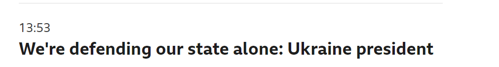 “今天早上,我们独自保卫我们的国家。就像昨天一样,世界上最强大的力量就在远处看着。”泽连斯基在今天上午向全国发表讲话时说。