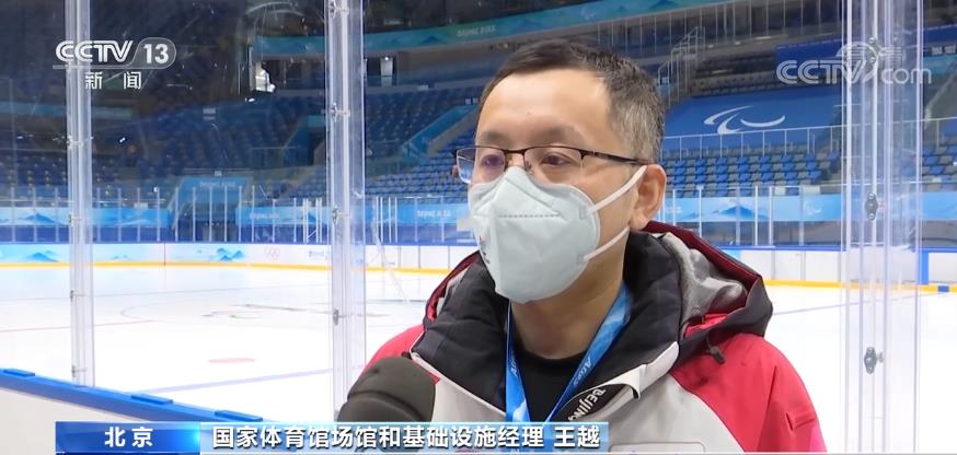 国家体育馆场馆和基础设施经理 王越:整个转换时间只有5天的时间。我们经过统筹紧密的一个安排,冬奥会和冬残奥会的转换工作完成以后,我们能充分实现定制化的热身区,为残奥运动员创造无障碍的参赛和比赛环境,是充分践行了以运动员为中心的一个理念,使残奥冰球运动员能够在国家馆无障碍通行,创造一个非常舒适的比赛环境。
