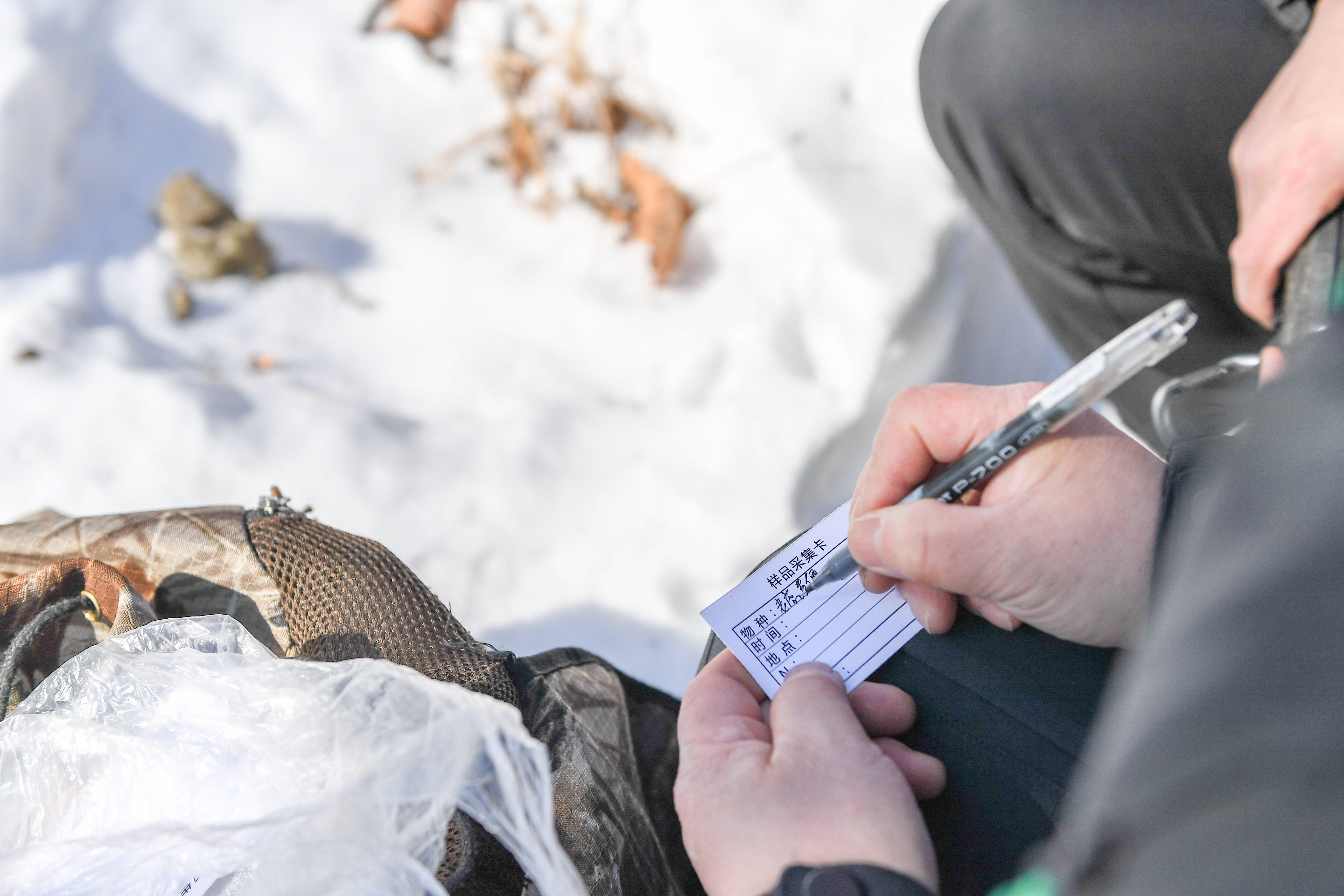 新华社照片,长春,2022年2月25日 东北虎豹国家公园里的“铲屎官” 2月23日,巡护员徐衍春记录采集的东北虎粪便样本信息。 在吉林省珲春市,冬季的山林格外寂静。东北虎豹国家公园珲春市林业局巡护队的巡护员徐衍春、黄幸运、王俊江和郎辉,每天都要来到这里,徒步几公里完成巡护。一方面要清理非法捕猎设备,一边还要寻找野生东北虎、东北豹留下的踪迹,其中就包括这些“大猫”的粪便。 粪便是野生动物留给巡护员们的特别“信件”,可能包含野生东北虎、东北豹的基因、年龄、性别、身体状况等信息,有着极高的科研价值。粪便样本是巡护员们眼中的“珍宝”,“铲屎官”也成为巡护员们的特殊昵称。 东北虎豹国家公园于2017年开始试点,2021年正式成立。在这个横跨吉、黑两省、面积达1.4万平方公里的公园里,野生东北虎、东北豹数量由试点之初的27只和42只分别增长至50只和60只。监测到新繁殖幼虎10只以上、幼豹7只以上,呈现向中国内陆扩散的趋势,打破了外界关于“野生东北虎将在中国绝迹”的预言。 徐衍春说:“保护野生动物也是为了我们人类自己,要像保护眼睛一样保护生态环境,用实际行动擦亮中国生态文明建设的名片。” 新华社记者 张楠 摄