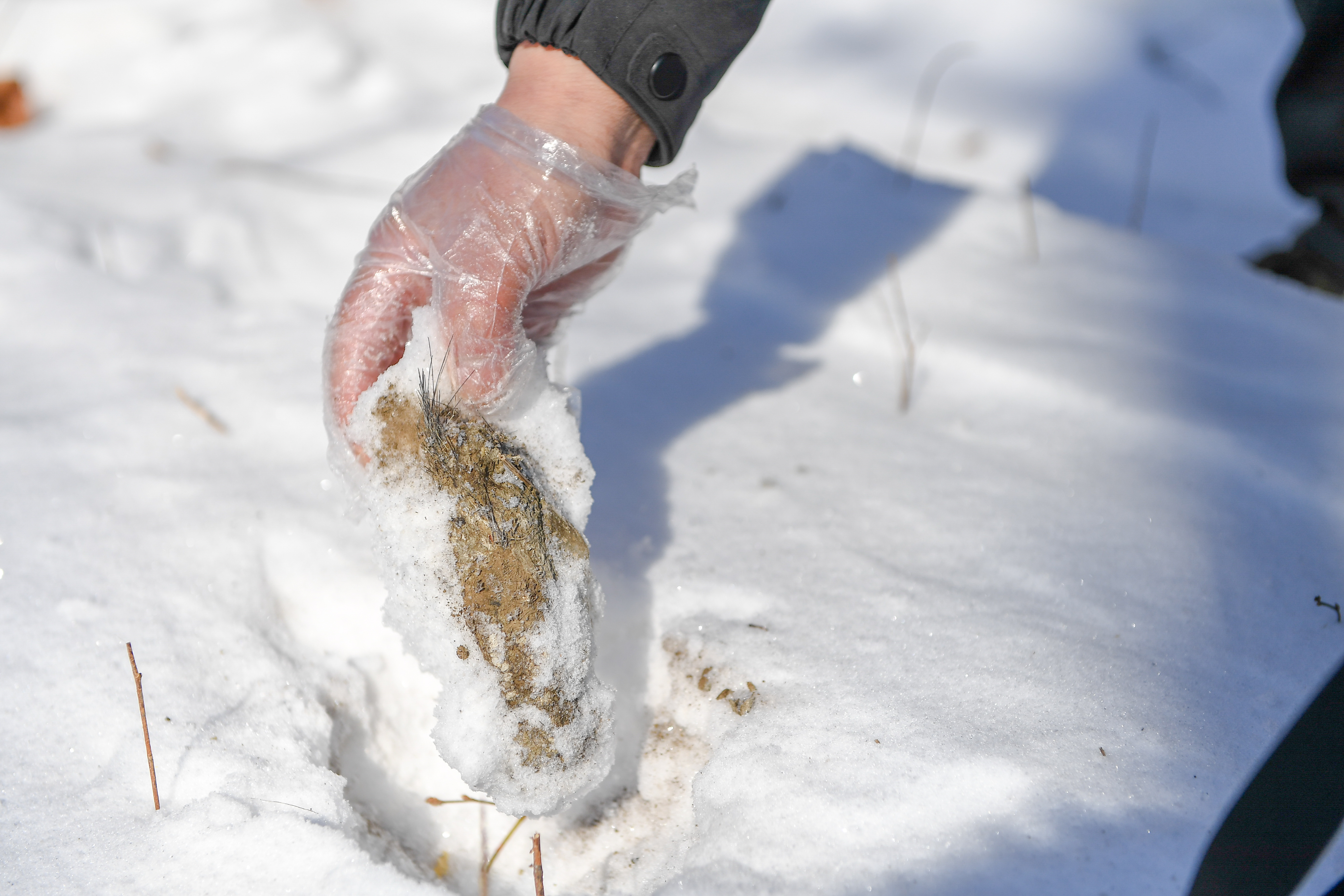 新华社照片,长春,2022年2月25日 东北虎豹国家公园里的“铲屎官” 2月23日,巡护员徐衍春采集东北虎粪便样本。 在吉林省珲春市,冬季的山林格外寂静。东北虎豹国家公园珲春市林业局巡护队的巡护员徐衍春、黄幸运、王俊江和郎辉,每天都要来到这里,徒步几公里完成巡护。一方面要清理非法捕猎设备,一边还要寻找野生东北虎、东北豹留下的踪迹,其中就包括这些“大猫”的粪便。 粪便是野生动物留给巡护员们的特别“信件”,可能包含野生东北虎、东北豹的基因、年龄、性别、身体状况等信息,有着极高的科研价值。粪便样本是巡护员们眼中的“珍宝”,“铲屎官”也成为巡护员们的特殊昵称。 东北虎豹国家公园于2017年开始试点,2021年正式成立。在这个横跨吉、黑两省、面积达1.4万平方公里的公园里,野生东北虎、东北豹数量由试点之初的27只和42只分别增长至50只和60只。监测到新繁殖幼虎10只以上、幼豹7只以上,呈现向中国内陆扩散的趋势,打破了外界关于“野生东北虎将在中国绝迹”的预言。 徐衍春说:“保护野生动物也是为了我们人类自己,要像保护眼睛一样保护生态环境,用实际行动擦亮中国生态文明建设的名片。” 新华社记者 张楠 摄