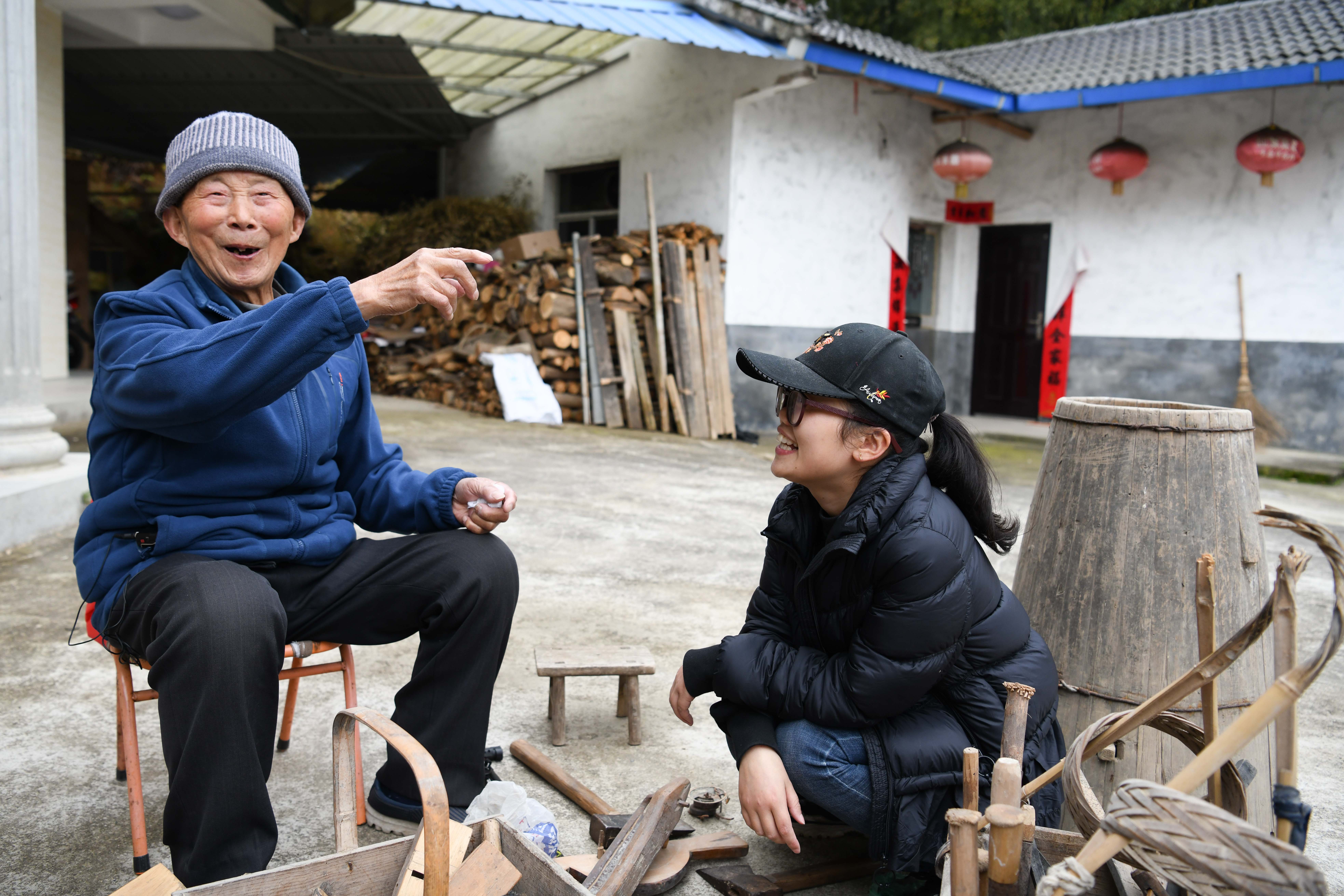 新华社照片,潜山(安徽),2022年2月25日 唤醒古村的“90后”川妹子 刘琳(右)计划在万涧村杨家老屋进行传统农具的展示,这是她前往村民家收集老物件(2021年3月27日摄)。 位于安徽省大别山区的潜山市万涧村是第五批中国传统村落。2018年6月,中规院(北京)规划设计有限公司驻村规划师刘琳来到万涧村,从事传统村落保护工作。如今她已成为村里的一名“新居民”。 刘琳出生于1991年,老家在四川南充,2017年获得四川大学生物工程硕士学位后,她选择扎根大山去追梦。刘琳认为要实现传统村落可持续发展,不仅要“输血”,更要会“造血”。为此,刘琳在万涧村发起成立回味乡愁农民专业合作社,推动金丝皇菊种植,发展传统村落民俗旅游,以产业培育来反哺传统村落保护,为乡村振兴贡献自己的力量。 新华社记者 张端 摄