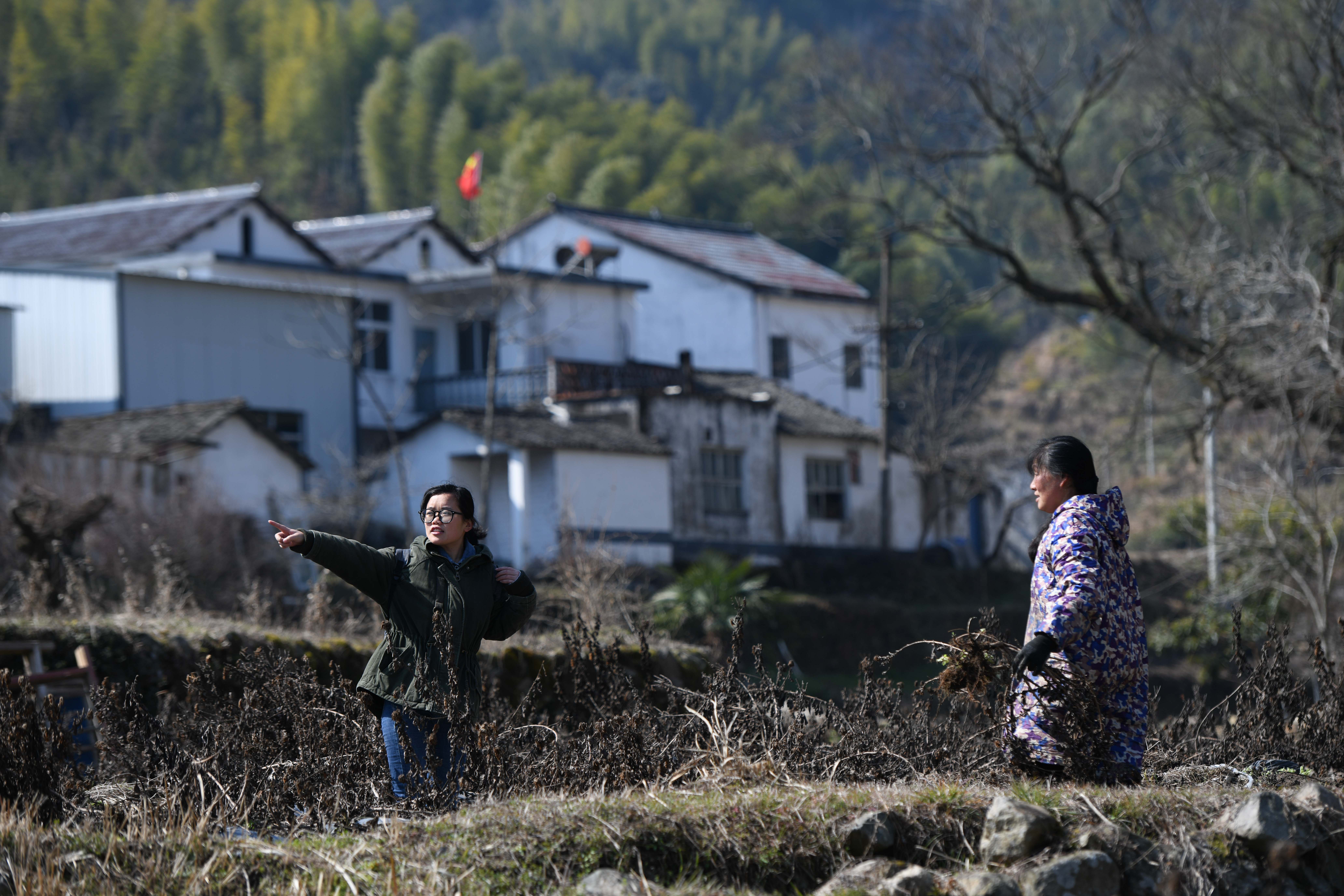 新华社照片,潜山(安徽),2022年2月25日 唤醒古村的“90后”川妹子 2月24日,刘琳(左)在万涧村与当地村民交流。 位于安徽省大别山区的潜山市万涧村是第五批中国传统村落。2018年6月,中规院(北京)规划设计有限公司驻村规划师刘琳来到万涧村,从事传统村落保护工作。如今她已成为村里的一名“新居民”。 刘琳出生于1991年,老家在四川南充,2017年获得四川大学生物工程硕士学位后,她选择扎根大山去追梦。刘琳认为要实现传统村落可持续发展,不仅要“输血”,更要会“造血”。为此,刘琳在万涧村发起成立回味乡愁农民专业合作社,推动金丝皇菊种植,发展传统村落民俗旅游,以产业培育来反哺传统村落保护,为乡村振兴贡献自己的力量。 新华社记者 张端 摄