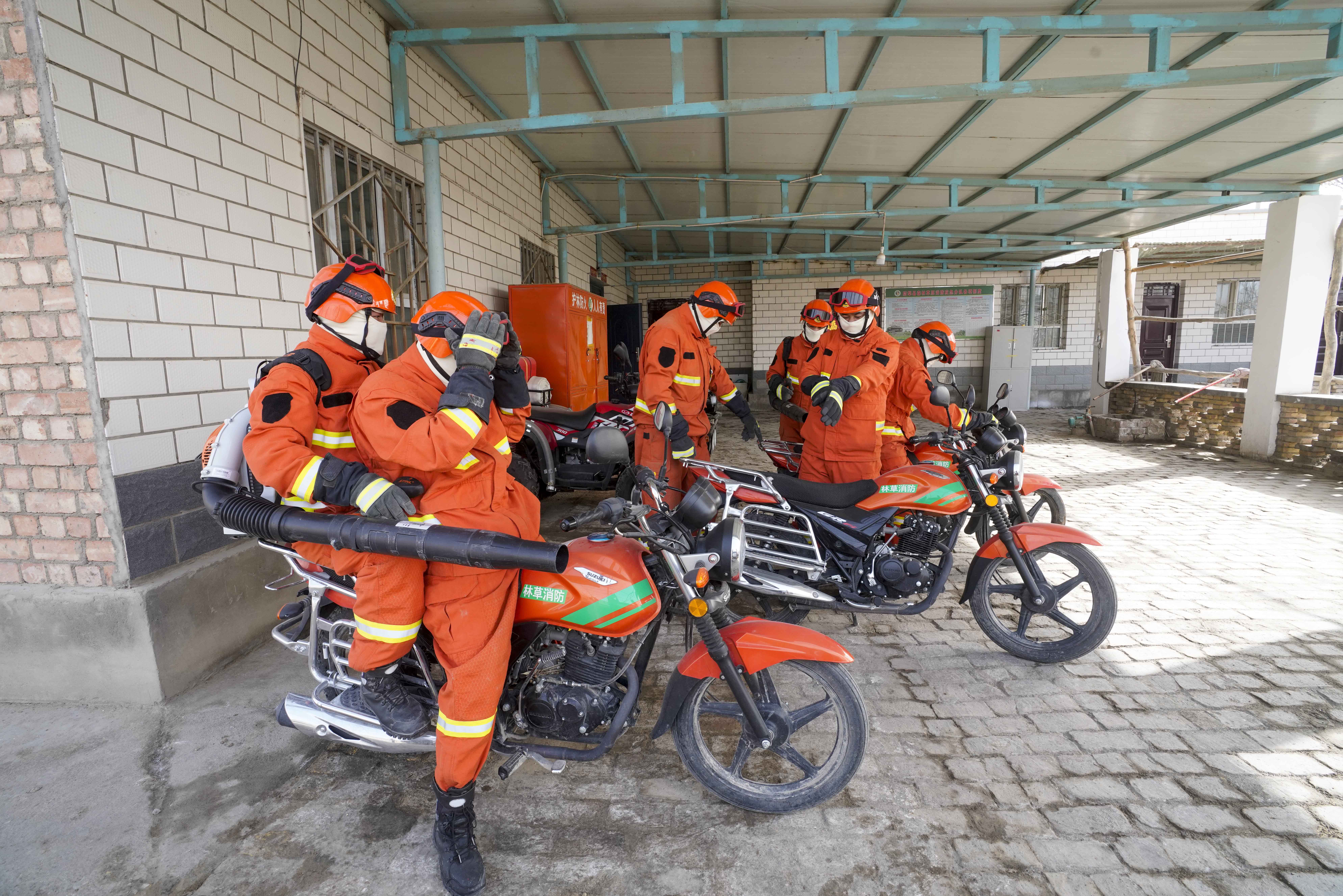 新华社照片,尉犁(新疆),2022年2月25日 美丽的胡杨林深处,有一支护林员消防队 尉犁县森林草原应急分队成员准备骑摩托车前往一处胡杨林展开训练(2月22日摄)。 新疆巴音郭楞蒙古自治州尉犁县位于塔里木河中下游,境内沿河两岸分布着的近百万亩胡杨林,是当地重要的绿洲生态屏障。 守护胡杨林,防火是重中之重。 2021年初,尉犁县林业和草原局从当地190多名护林员中选出7人,组成森林草原应急分队,24小时备勤值班应对初期火情。分队配备了油锯、背负式自动灭火水枪等装备,在当地森林消防支队的指导下学习森林防灭火基础常识,参加火场紧急避险和班组灭火行动等训练,成为胡杨林深处的第一道“防火闸”。 新华社记者 赵戈 摄