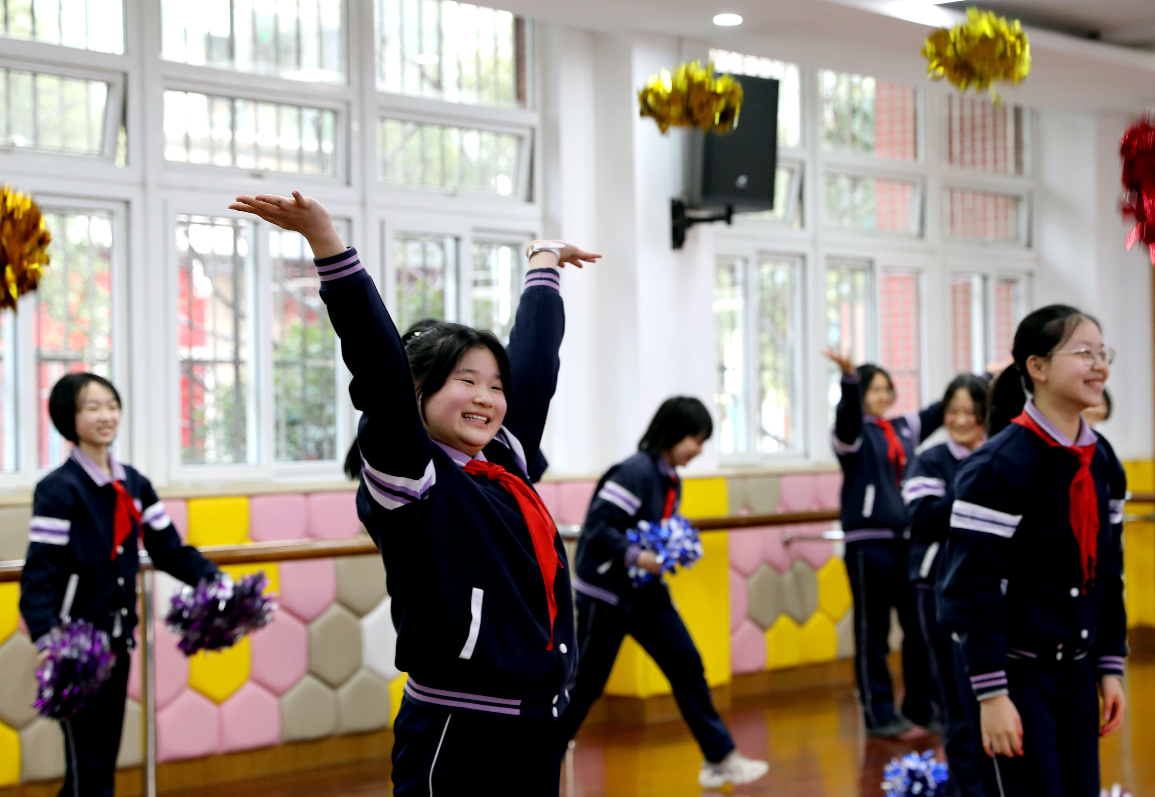 新华社照片,上海,2022年2月25日 “三点半”放学后 我的时间我做主 2月23日,在课后服务时间,格致初级中学的学生在啦啦操社团课程中练习。 “双减”后的新学期,上海中小学继续有序推进课后服务。在上海市格致初级中学,艺术、体育、探究、科技类数十项社团课程向学生开放自主申请,激发他们探究知识的热情,让学生们感受团体合作与自我成长。课后服务效能和质量的提升,满足了学生自主选择、自我发展的需要。 新华社记者 刘颖 摄