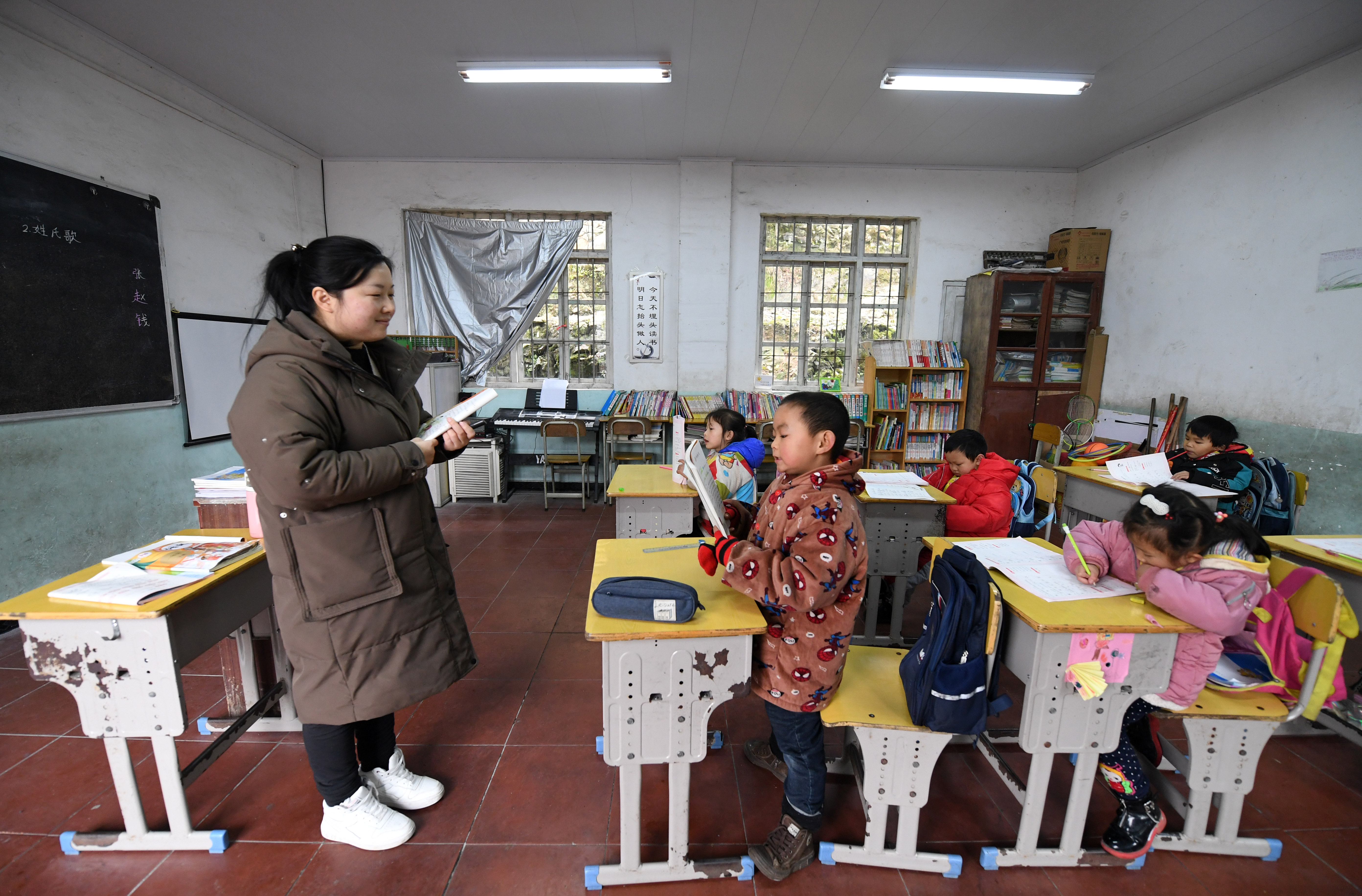 新华社照片,灵川(广西),2022年2月25日 带着母亲儿子去教书 石夏月在教学点给学生上课(2月24日摄)。 拉上母亲,带上儿子,石夏月一头扎进离家35公里的大山,用琅琅书声陪伴山里的孩子,用知识搭起他们走出大山的桥梁。 1988年出生的石夏月,家住广西灵川县兰田瑶族乡兰田村。大学毕业后,她曾在广东从事幼教工作,也在政府部门做过信息员。2019年,她通过考试成为一名教师。出于对家乡的眷恋,石夏月选择回到乡里,在东良教学点任教。 从兰田村到教学点,山路蜿蜒,骑摩托车单程也要一个多小时。为了兼顾家人和工作,石夏月把儿子和母亲接到学校一起生活。 目前,东良教学点有6名学生,石夏月是他们唯一的老师。从教学到生活,从早到晚,石夏月都在围着学生转。 对于这份职业,石夏月心中有着满满的获得感和责任感。“每听到学生叫一声老师,我心里都特别高兴,特别满足。”石夏月说,她将继续坚守,把自己的所见所学都传授给孩子们,帮助他们走向更加美好广阔的世界;更期盼他们学成后,能回来跟老师分享他们学到的东西、看到的世界。 新华社记者 陆波岸 摄