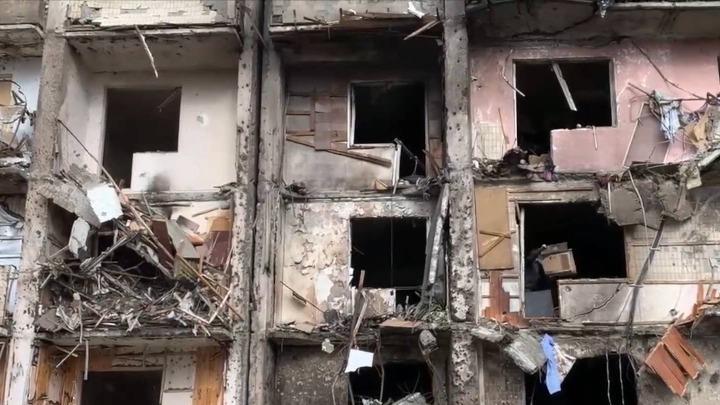 直击基辅:炸弹留下大坑 居民楼外满地碎渣