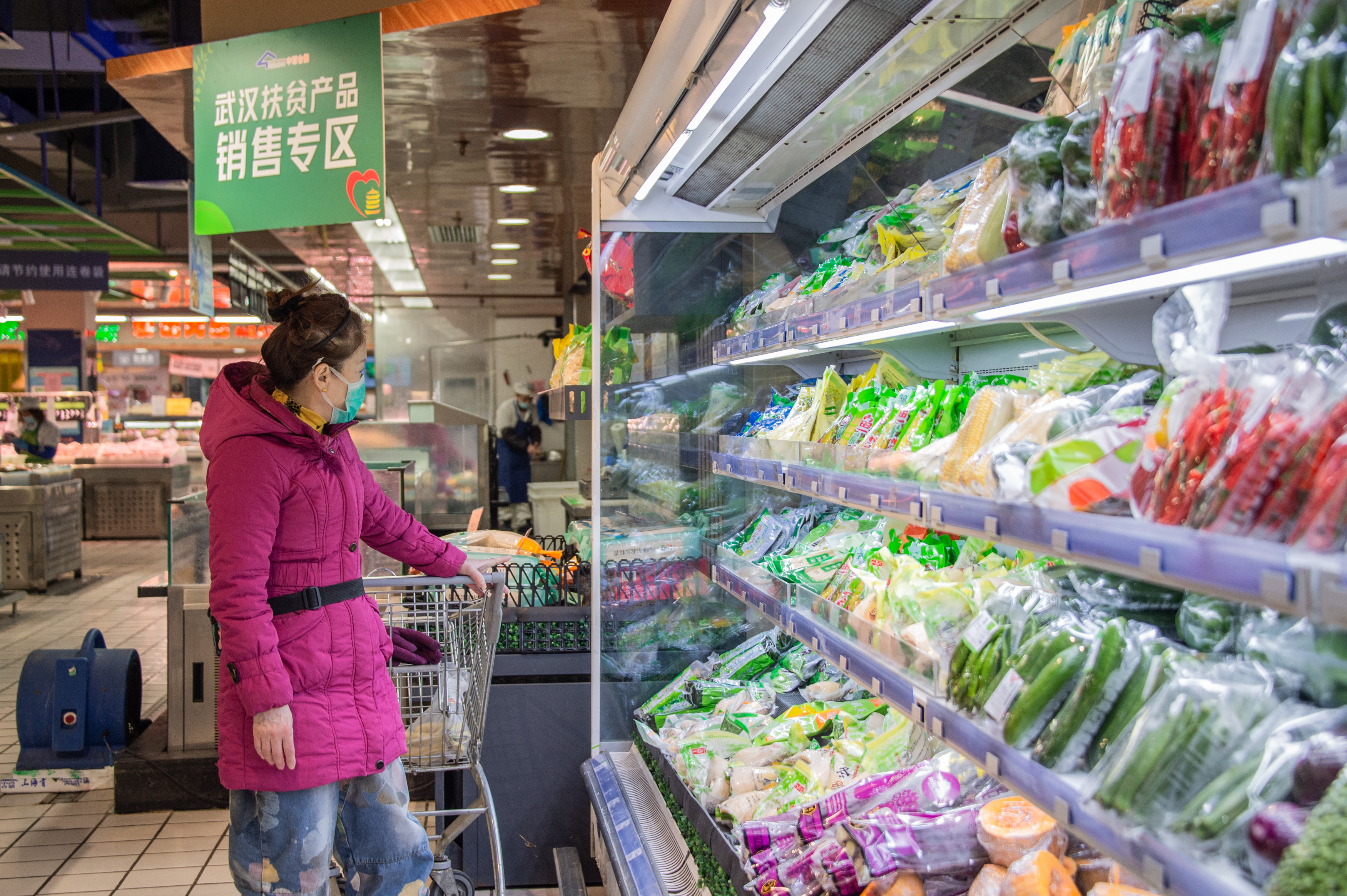 新华社照片,武汉,2022年2月25日 快速精准、严格有序——武汉阻击奥密克戎 2月24日,市民在武汉市江岸区一商店购物。 (配本社同题文字稿) 新华社发(伍志尊摄)