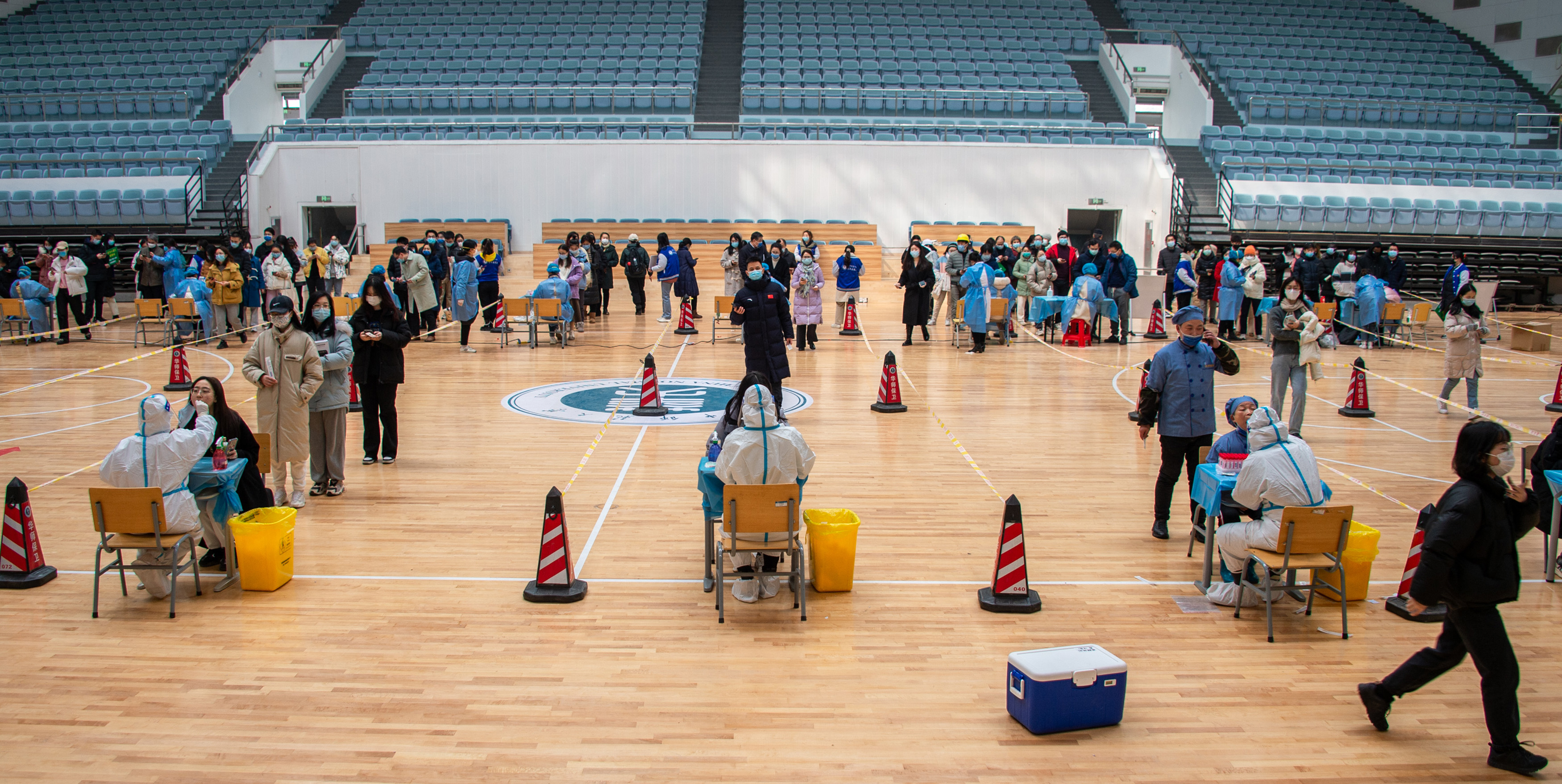 新华社照片,武汉,2022年2月25日 快速精准、严格有序——武汉阻击奥密克戎 2月22日,武汉市华中师范大学师生在进行核酸检测。 (配本社同题文字稿) 新华社发(伍志尊摄)