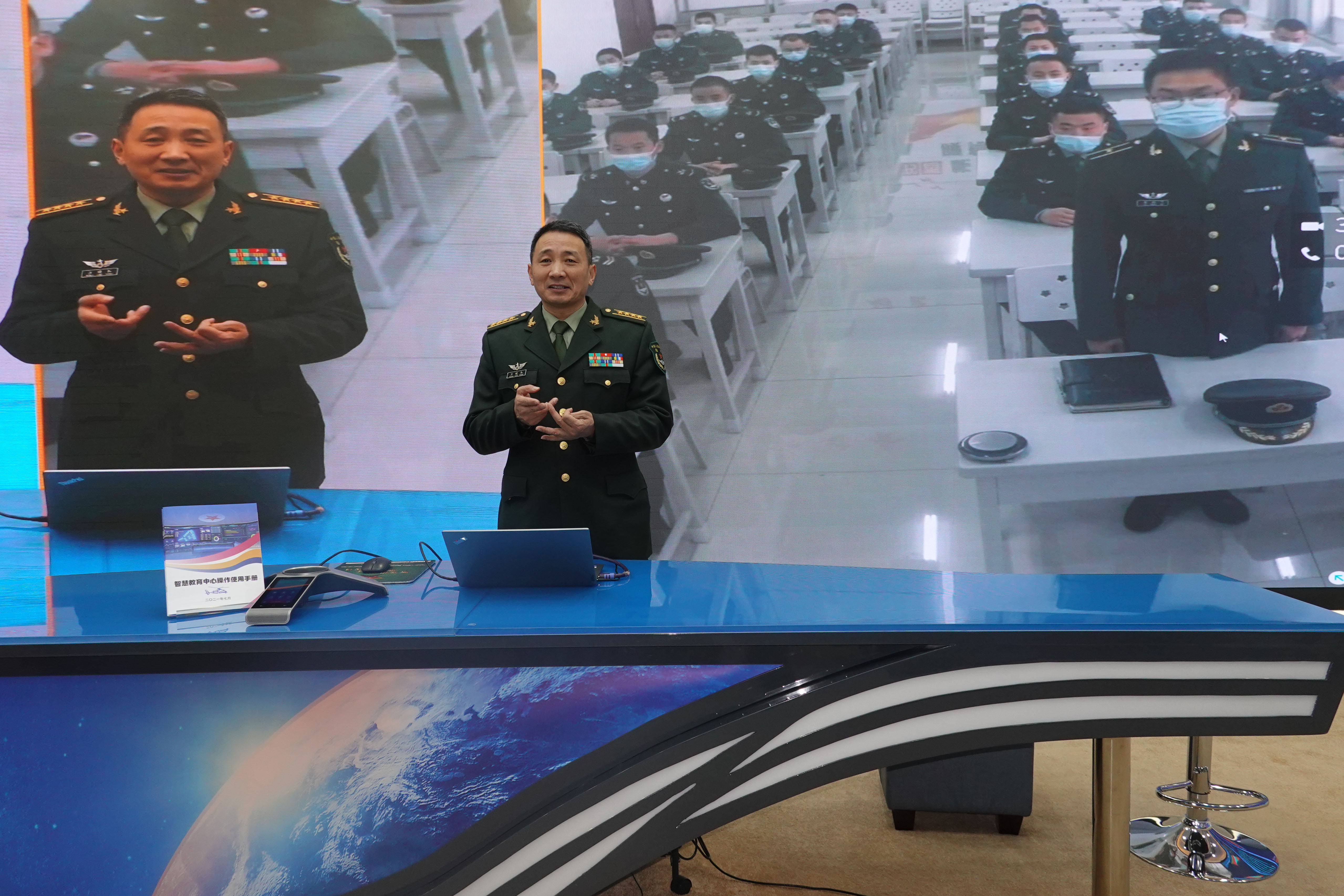 新华社照片,石家庄,2022年2月25日 逐梦蓝天的铸魂人——第82集团军某陆航旅政委汪晓红奋斗强军记事 第82集团军某陆航旅政委汪晓红利用智慧教育平台为官兵上党课(2月13日摄)。 (配本社同题文字稿) 新华社记者 张永进 摄