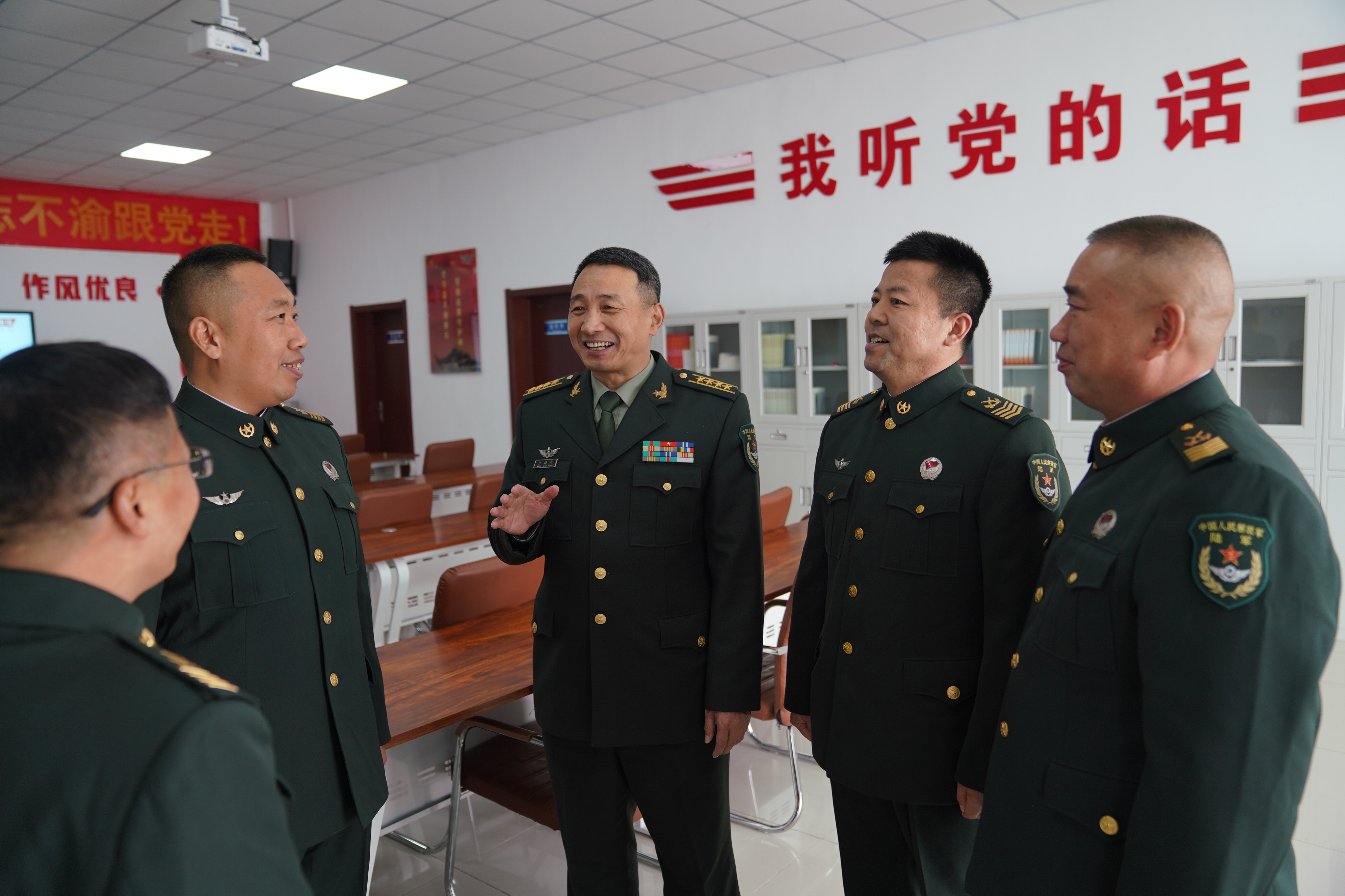 新华社照片,石家庄,2022年2月25日 逐梦蓝天的铸魂人——第82集团军某陆航旅政委汪晓红奋斗强军记事 第82集团军某陆航旅政委汪晓红(中)到连队调研(2月12日摄)。 (配本社同题文字稿) 新华社记者 张永进 摄
