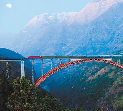 乌蒙山深处的北盘江大桥上,6081次公益慢火车驶过。