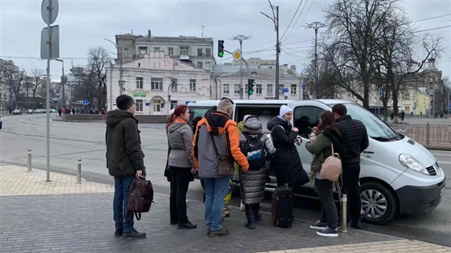 2月25日,人们在乌克兰基辅街头乘车,准备离开基辅。新华社记者 鲁金博 摄