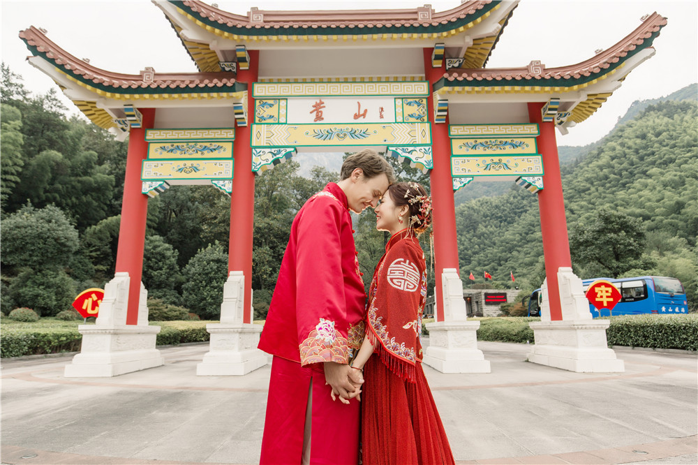 2019年,卓文和邱桐在黄山举办了中式婚礼。