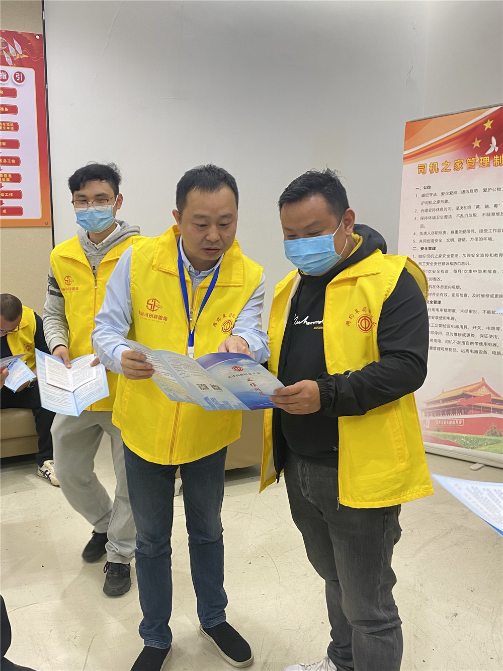 长沙市高新区网约车司机行业工会联合会主席邓勇春(中)在为网约车司机讲解相关政策。受访者供图