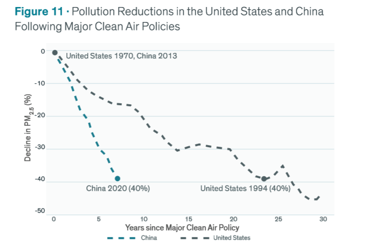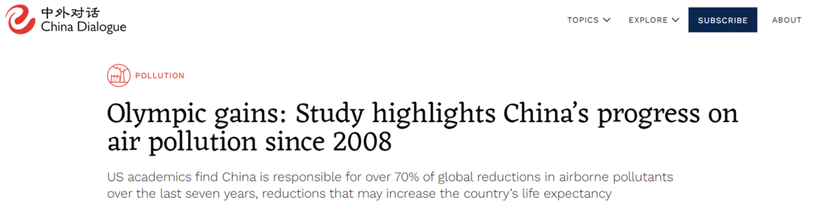 美国芝加哥大学能源政策研究所(EPIC)所长迈克尔·格林斯通教授说:“中国削减空气污染物的速度在全球范围内是史无前例的。”