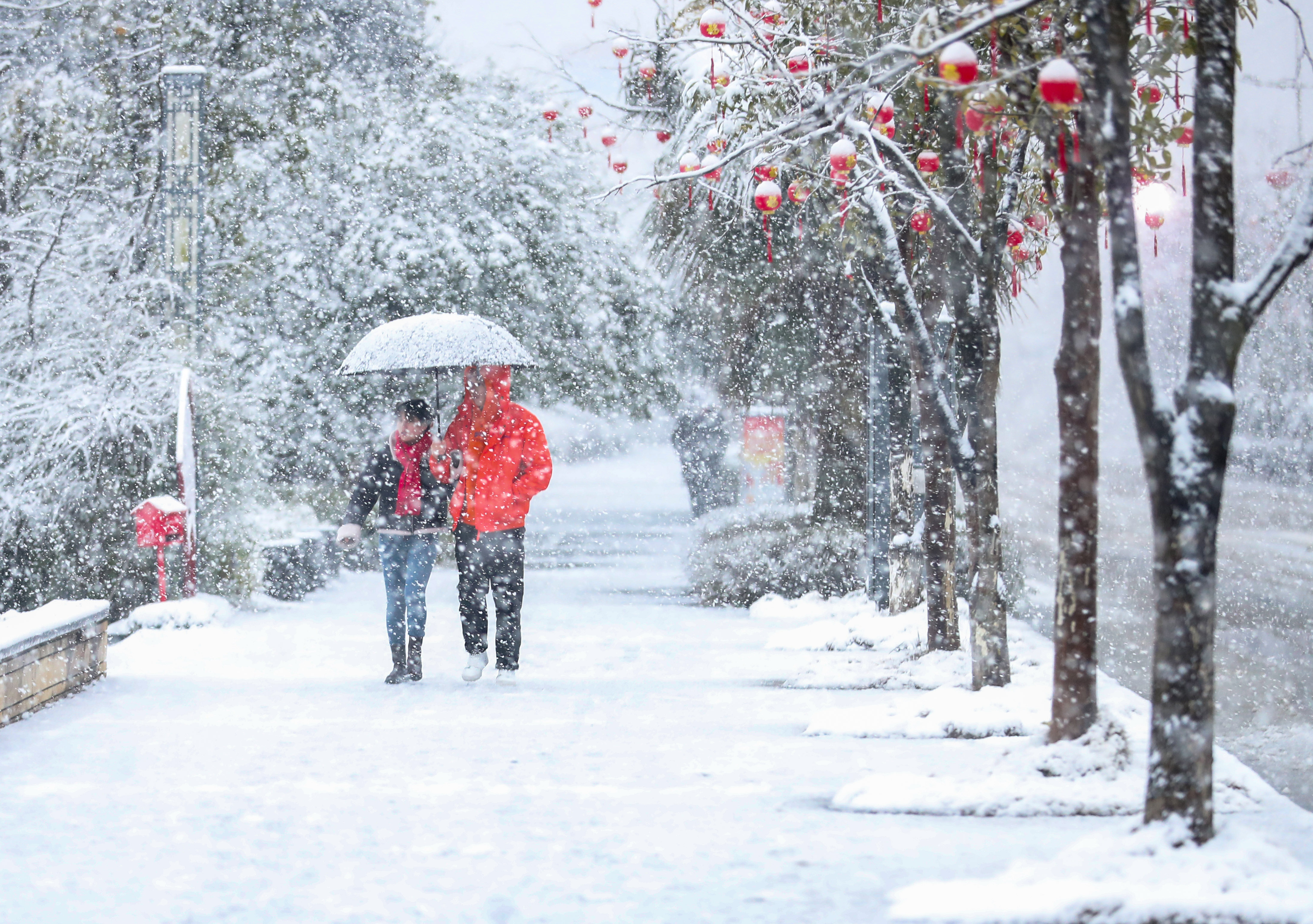 新华社照片,北京,2022年2月26日 春雪纷飞美如画 2月22日,在贵州省铜仁市玉屏侗族自治县,人们冒雪出行。 新华社发(胡攀学 摄)
