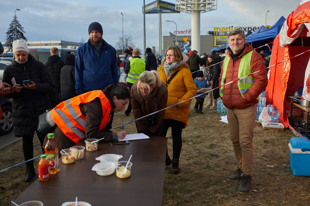 在一个无油可加的加油站,几名当地的波兰人说,他们组成了一个志愿者小组,去边境接来波兰的乌克兰人。40岁的格热戈日经营着一家运输公司,他说,这些乌克兰人大部分会被安排在学校和商场里,还有一些人会去投奔在波兰的亲戚朋友。