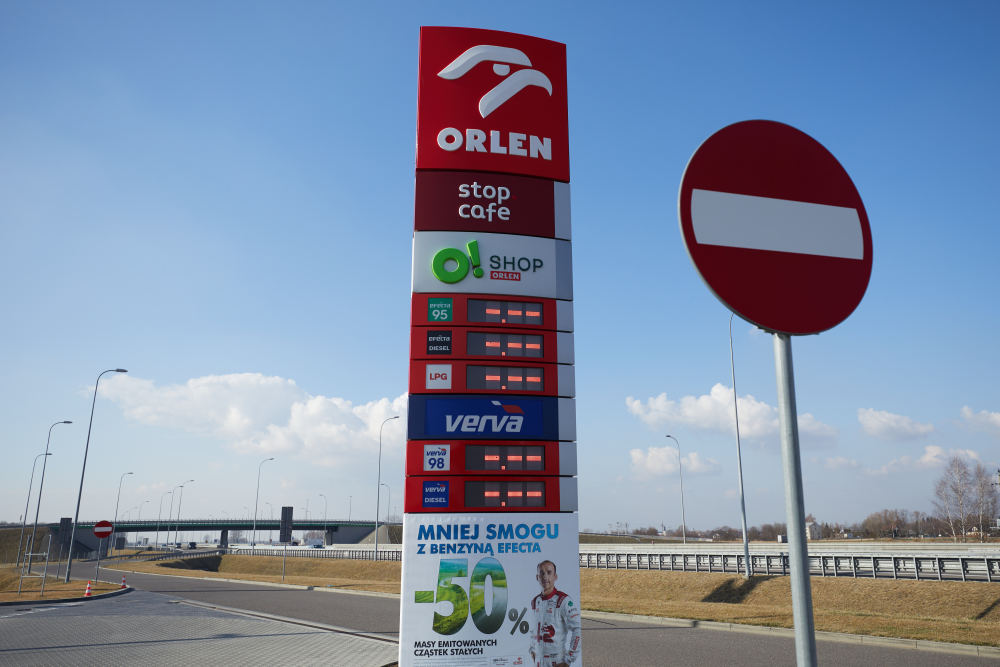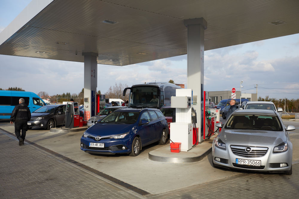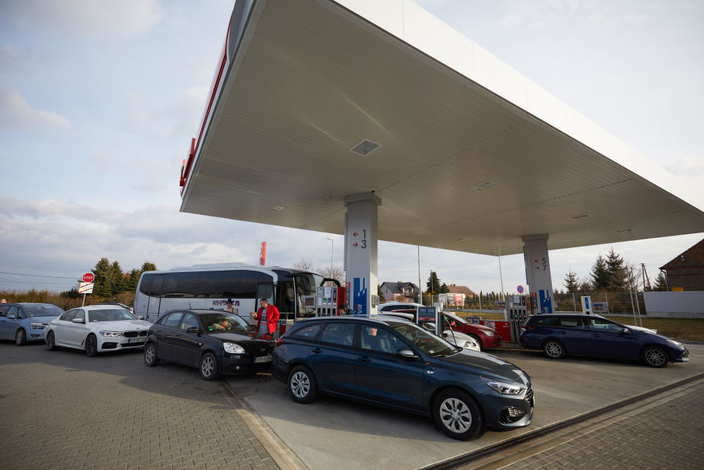 ↑2月26日,在波兰靠近乌克兰边境的一处加油站,车辆排队加油。新华社记者 孟鼎博 摄
