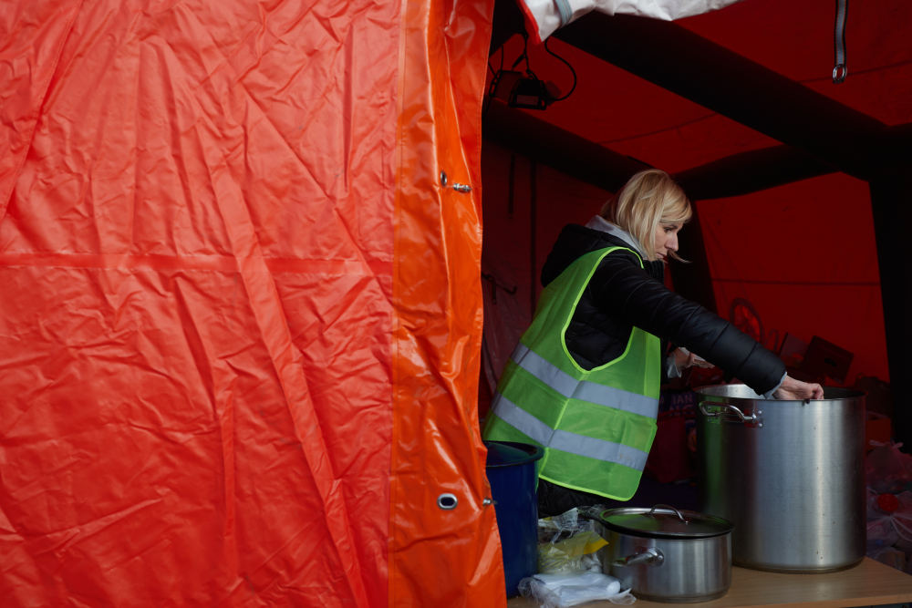 ↑2月26日,工作人员在波兰普热梅西尔为到来的乌克兰人准备伙食。新华社记者 孟鼎博 摄