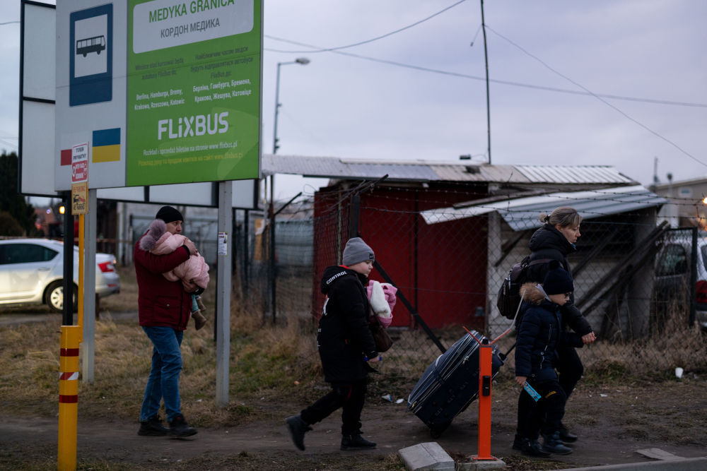 26日夜的波兰边境口岸梅迪卡很冷,零度的温度使人瑟瑟发抖。成群结队逃离的乌克兰人,从这里陆续进入波兰。