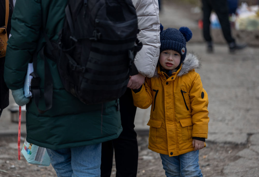 ↑2月26日,一名乌克兰男孩抵达波兰边境口岸梅迪卡。新华社记者 周楠 摄