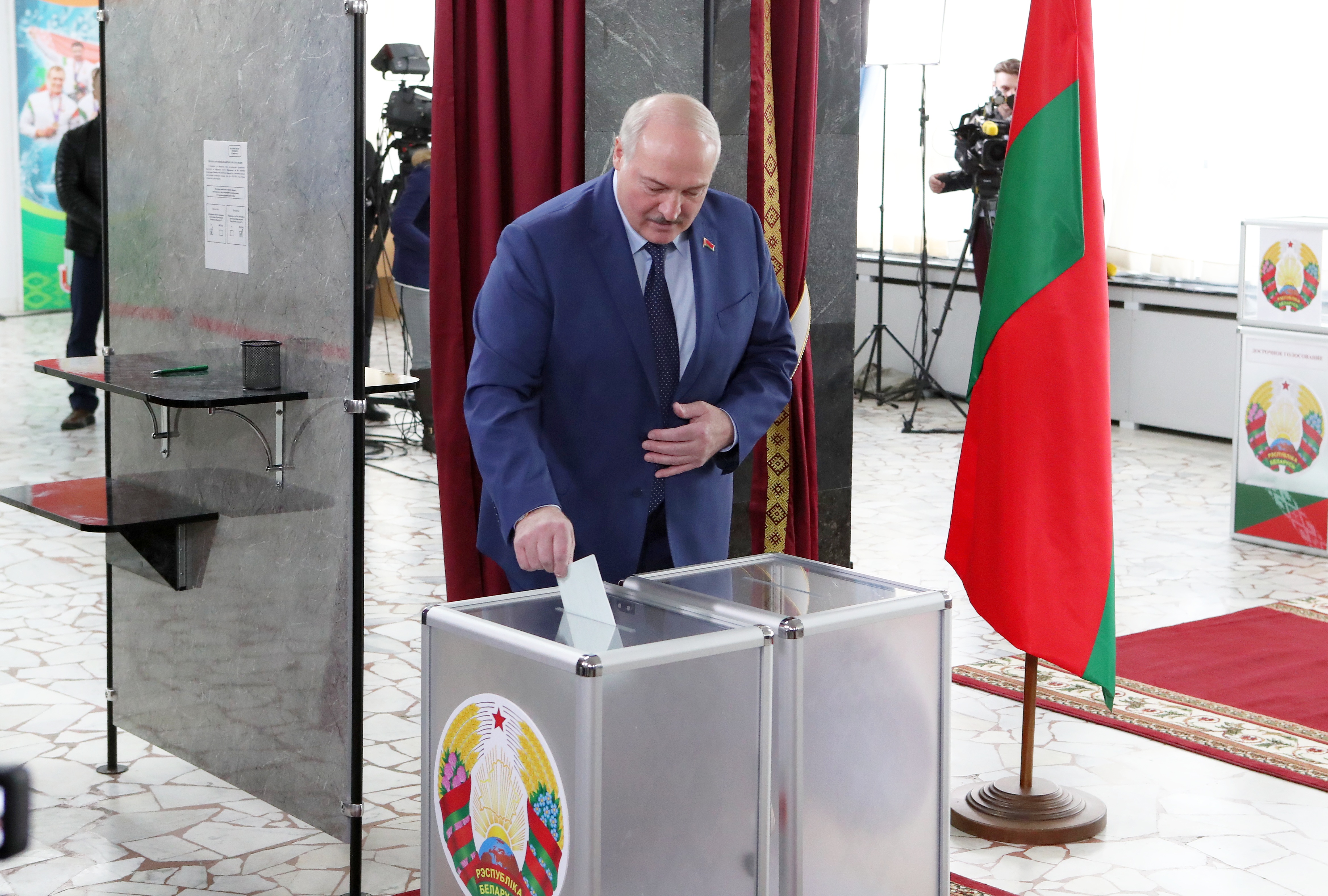 新华社照片,明斯克,2022年2月27日 (国际)(3)白俄罗斯举行修宪全民公投 2月27日,在白俄罗斯首都明斯克,白总统卢卡申科在投票点投票。 白俄罗斯27日举行关于修改宪法的全民公投。公投于当地时间早8时开始,将持续至20时。 新华社发(任科夫摄)