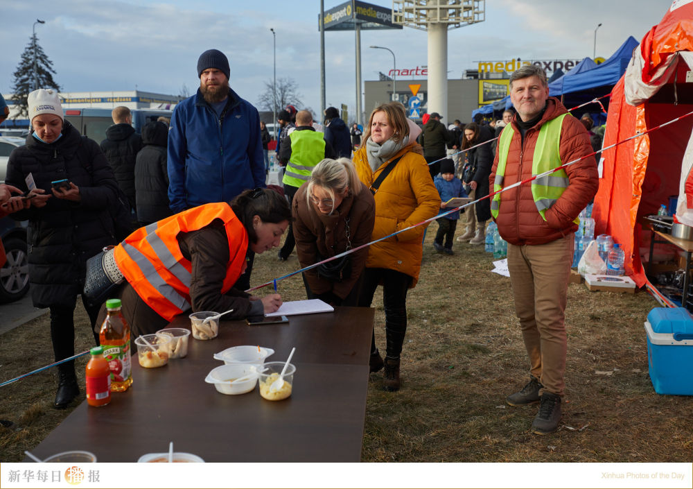 2月26日,工作人员在波兰普热梅西尔为到来的乌克兰人登记信息。新华社记者孟鼎博摄
