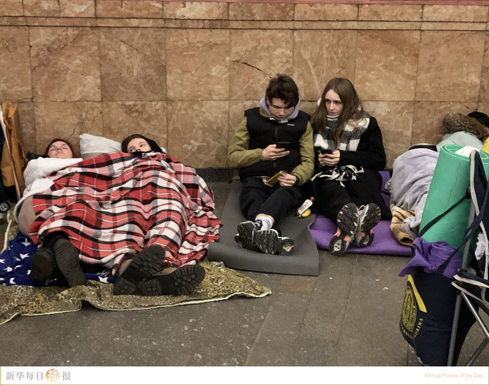 2月25日,人们在乌克兰基辅一处地铁站内避险。新华社记者鲁金博摄