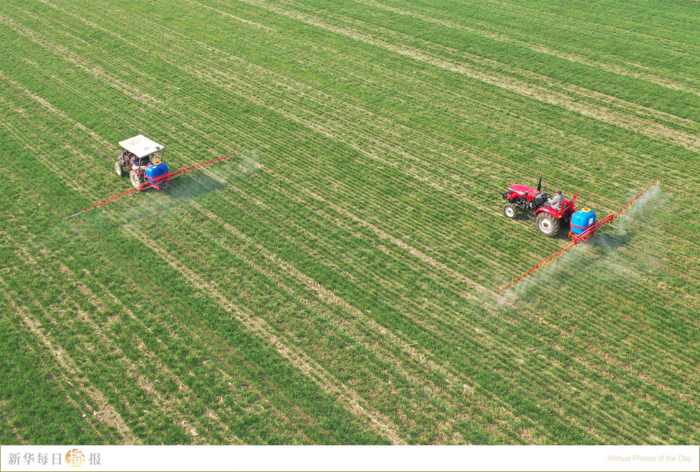 2月26日,在安徽省亳州市谯城区双沟镇三官村,农户驾驶农药喷雾机在麦田劳作。天气转暖,各地农民抓紧开展春耕各项工作,田间地头呈现出一派繁忙的早春景象。