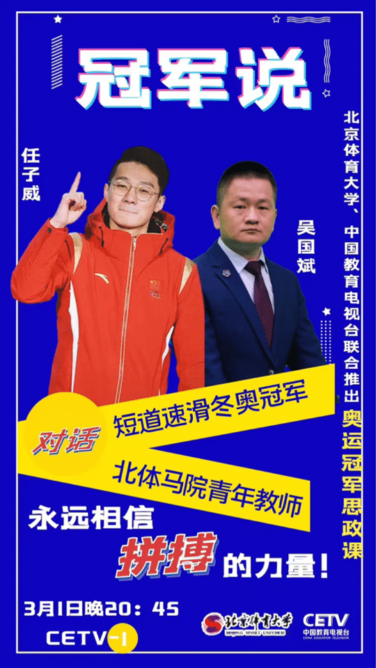 中国教育电视台携手北京体育大学联合打造的“冬奥冠军思政课”《冠军说》将于3月1日上线开播。